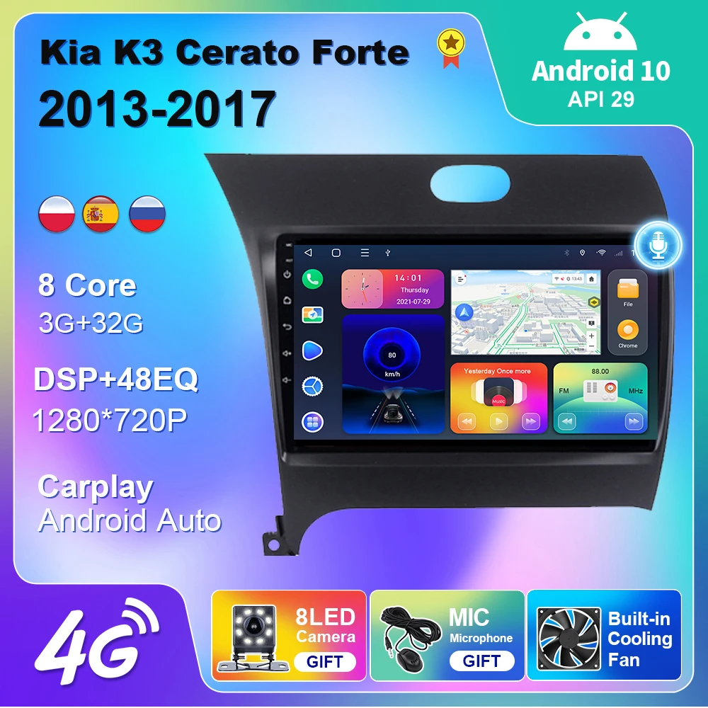 Автомагнитола 2 Din, для Kia K3 Cerato Forte 2013-2017, Android 10, GPS-навигация, 4G, Wi-Fi, Android, автоплей, DVD, мультимедийный проигрыватель