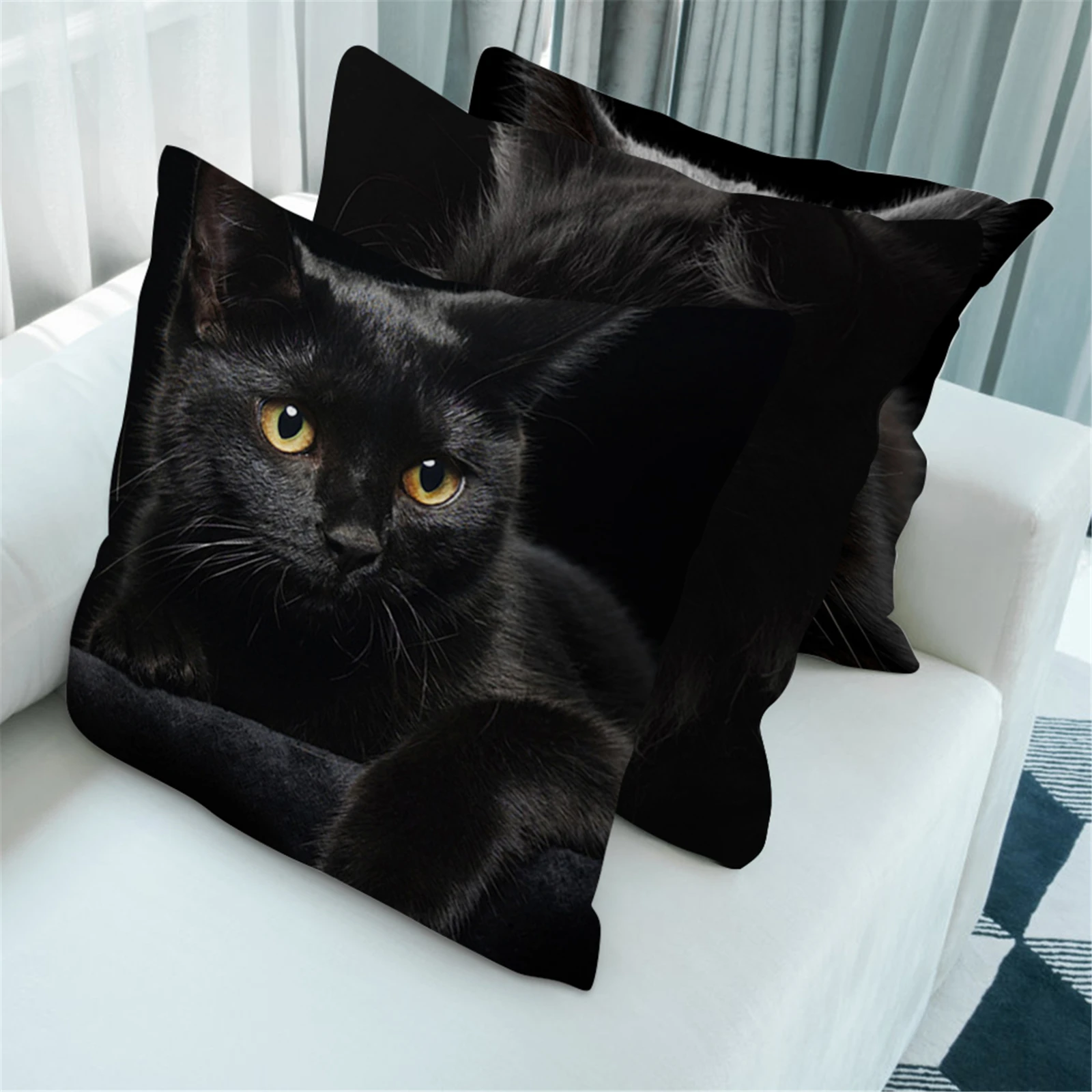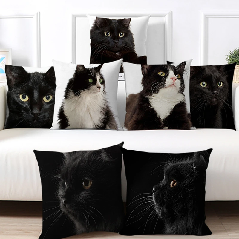 Наволочка с изображением черного кота, забавные мультяшные картинки, наволочка с принтом, украшение для детской комнаты в виде кота и кофе