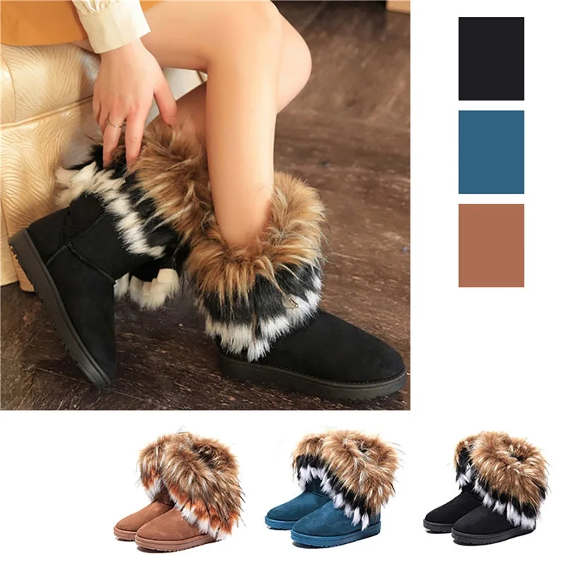Нескользящие зимние ботинки для женщин, зимние теплые пушистые мехо...