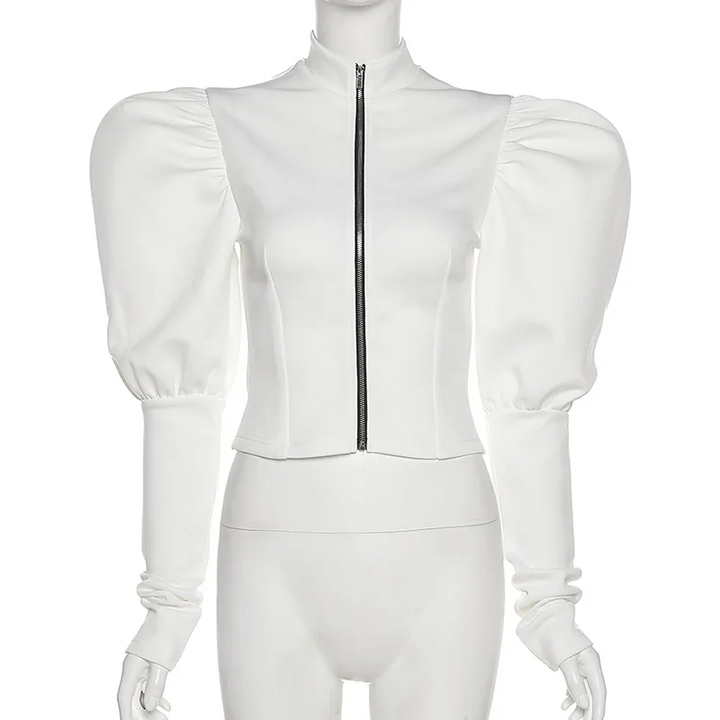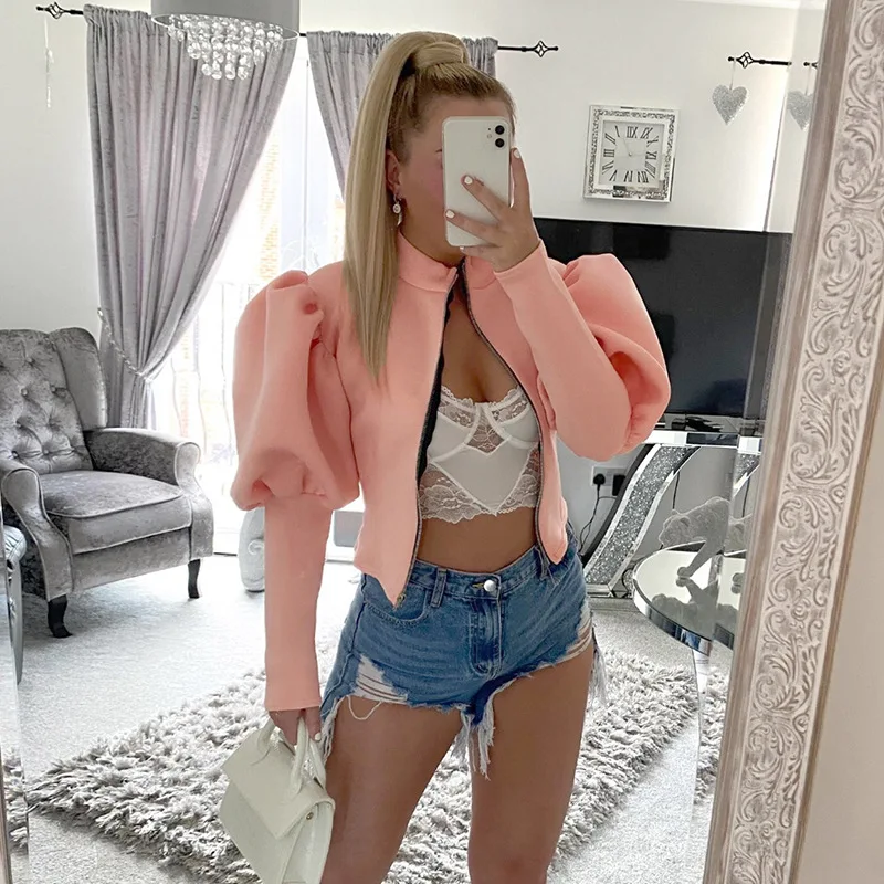 Женская Повседневная куртка на молнии, Укороченное пальто с длинным рукавом-фонариком, винтажная модная верхняя одежда розового и белого цветов для осени и зимы, 2021