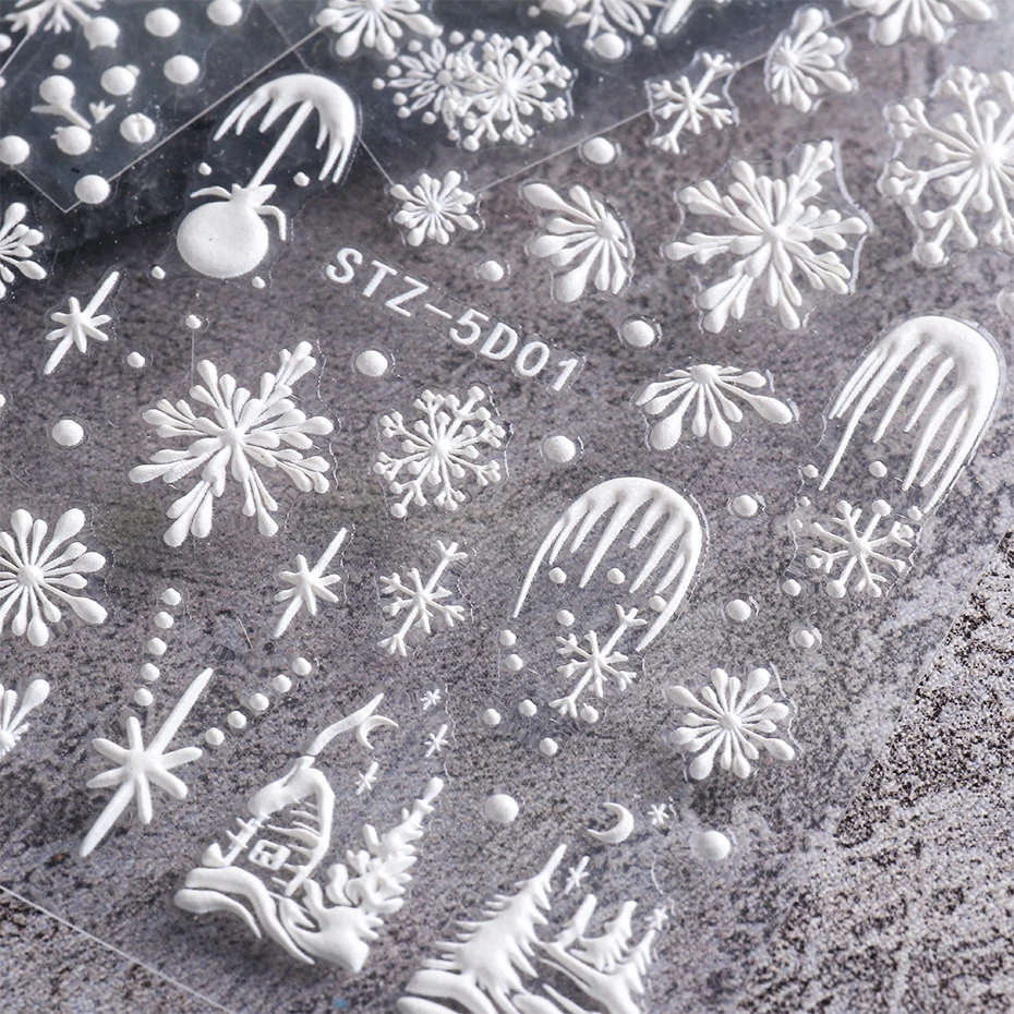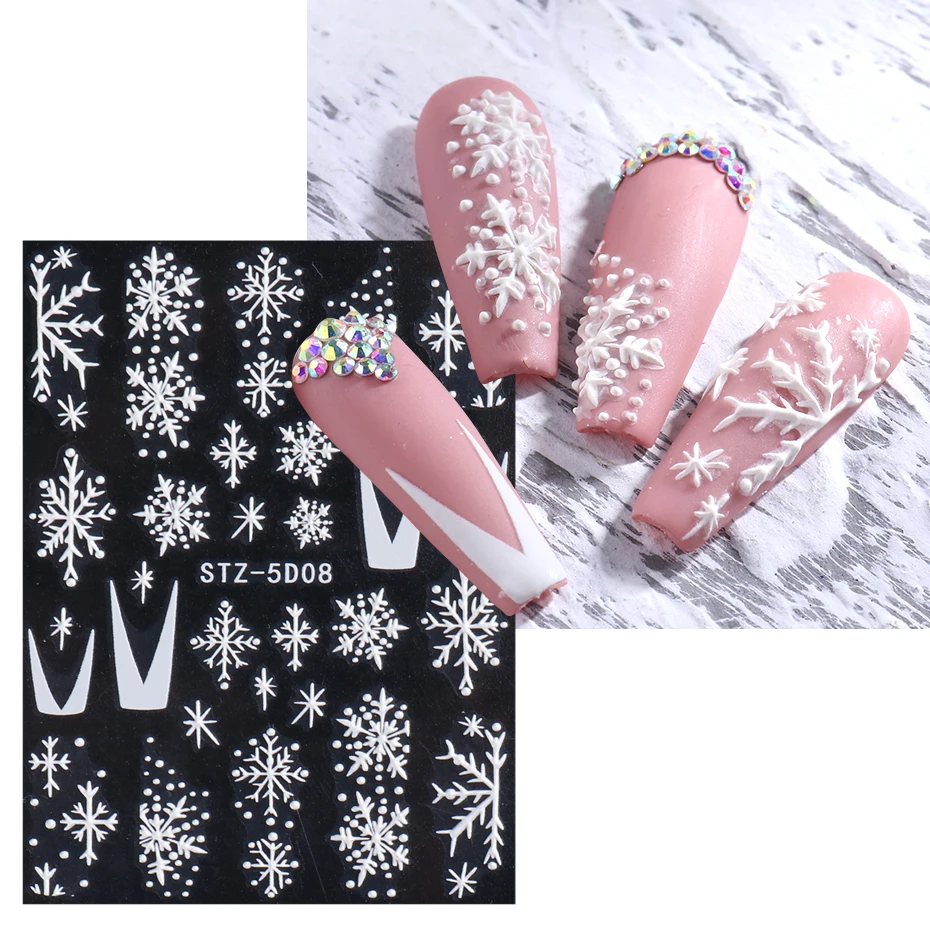 Рельефные 5D снежинки наклейки для ногтей, переводная картинка рождественские ногти художественные талисманы снег цветок лося дерево кружева Маникюр украшение BESTZ5D01-08
