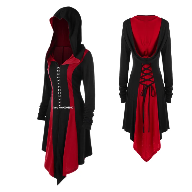 Женский костюм с капюшоном, готический костюм ведьмы эльфия в стиле стимпанк для косплея