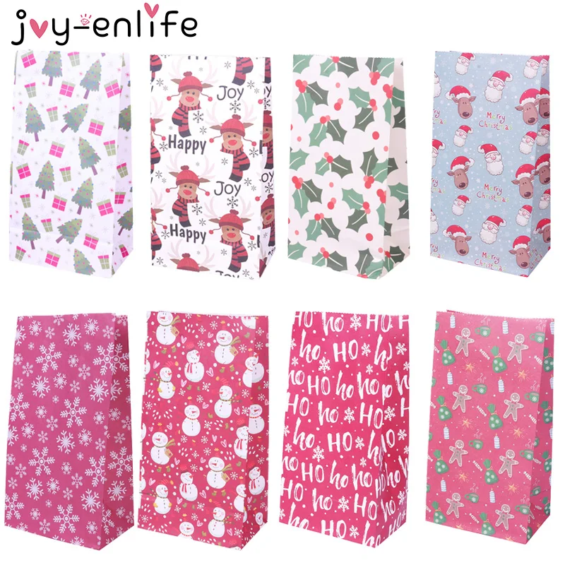 10 шт. Рождественские подарочные упаковочные пакеты Санта Снеговик крафт-бумага конфеты мешок для печенья украшение для рождественской вечеринки Xmas Navidad поставки