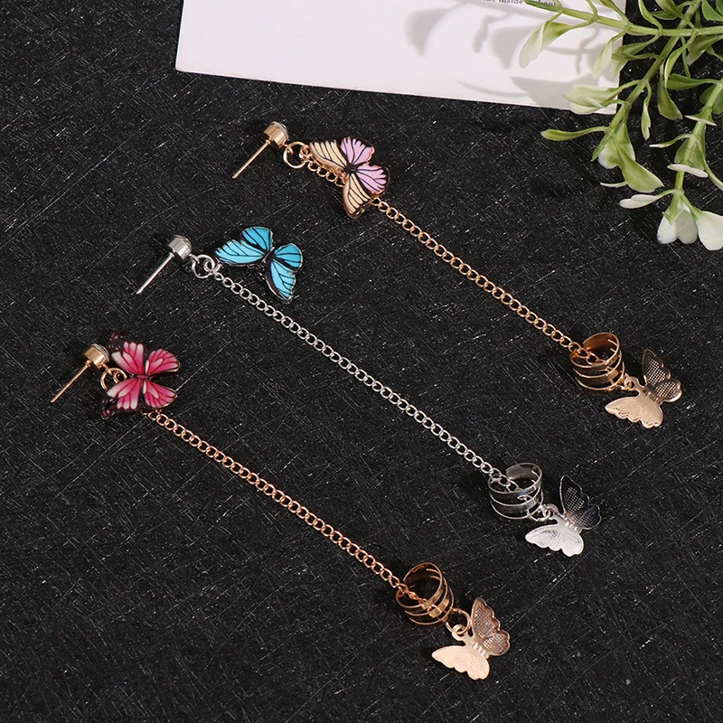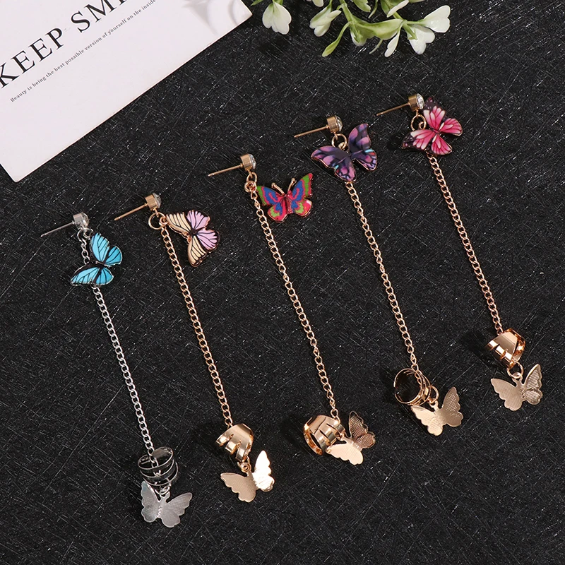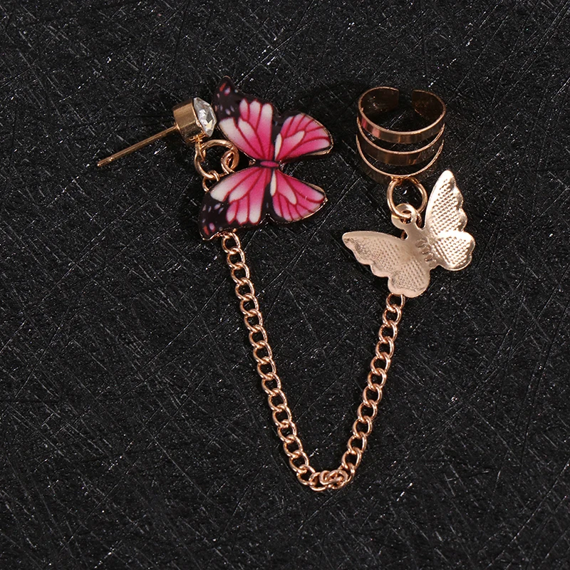 Модные серьги-клипсы в стиле панк с бабочками для подростков, женск...