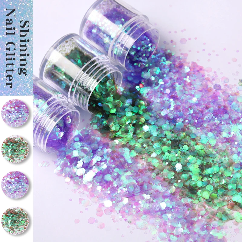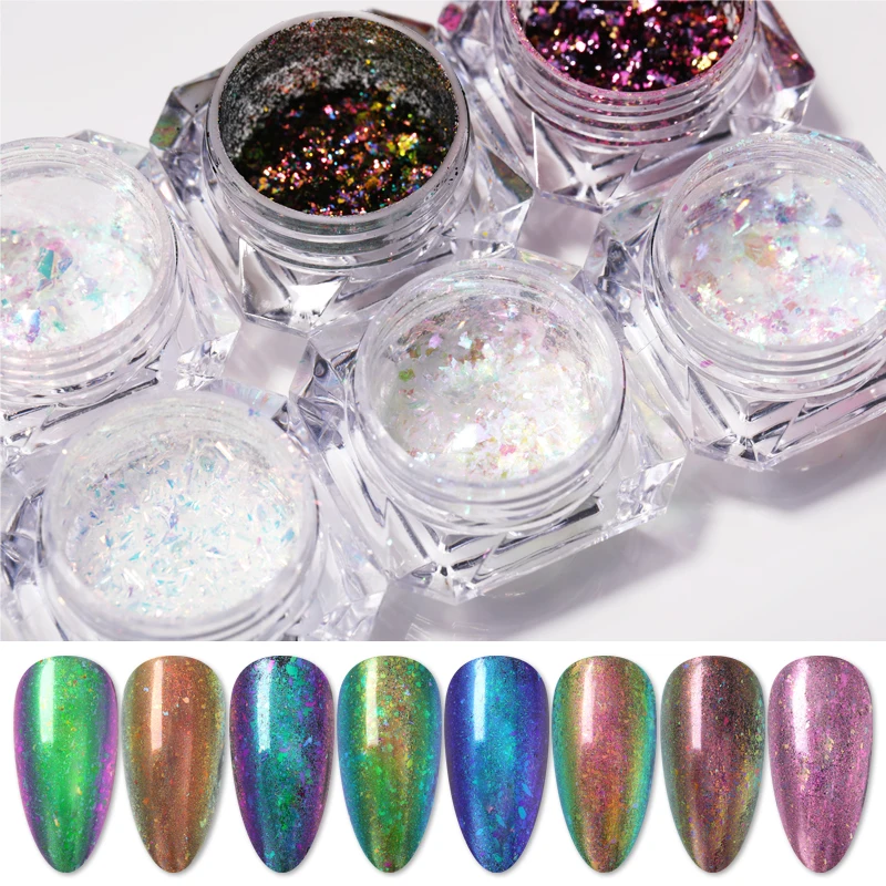 1 коробка хлопья для ногтей блестки блестка кристалл ногтей блестящий пигмент пыль порошок украшения для ногтей маникюр голографическая мощность