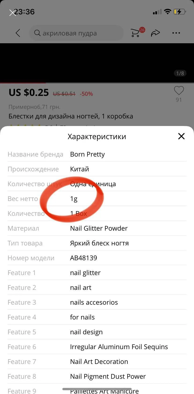 Продавец реальный обманщик. Заказала я данные хлопушки, они стоили очень дёшево, $0,25, думаю: « отлично, такую красоту так дёшево куплю. В итоге шили они больше месяца, но самое страшное, что их ОЧЕНЬ мало. Это не те хлопья, которых нужно очень мало для дизайна, их идет очень много даже на пол пальца, а с этим количеством это просто жесть. Вместе с БАНОЧКОЙ мне не показывает 0,1 грамм, хотя продавец указал, что БЕЗ баночки содержимого должно быть 0,1 грамм. Не берите у продавца, он обманщик, деньги возвращать не хотел, али вмешались и вернули деньги за одну баночку, за вторую деньги я не получила