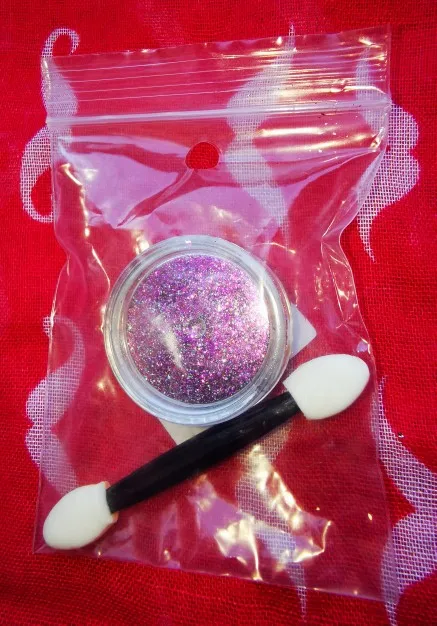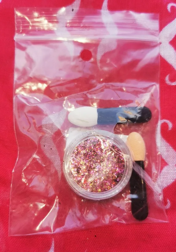 Заказ пришел в Киев за 32 дня УкрПочтой. Трек отслеживался только на территории Тайваня. Коробочки с блёстками пришли целые, без повреждений. Баночка упакована в отдельный пакетик, в комплекте есть спонж для нанесения. В баночке материала на самом дне, хватит максимум на 1-2 раза. Блёстки однородные с добавлением темного напыления. В работе не пробовала. Не рекомендую заказывать