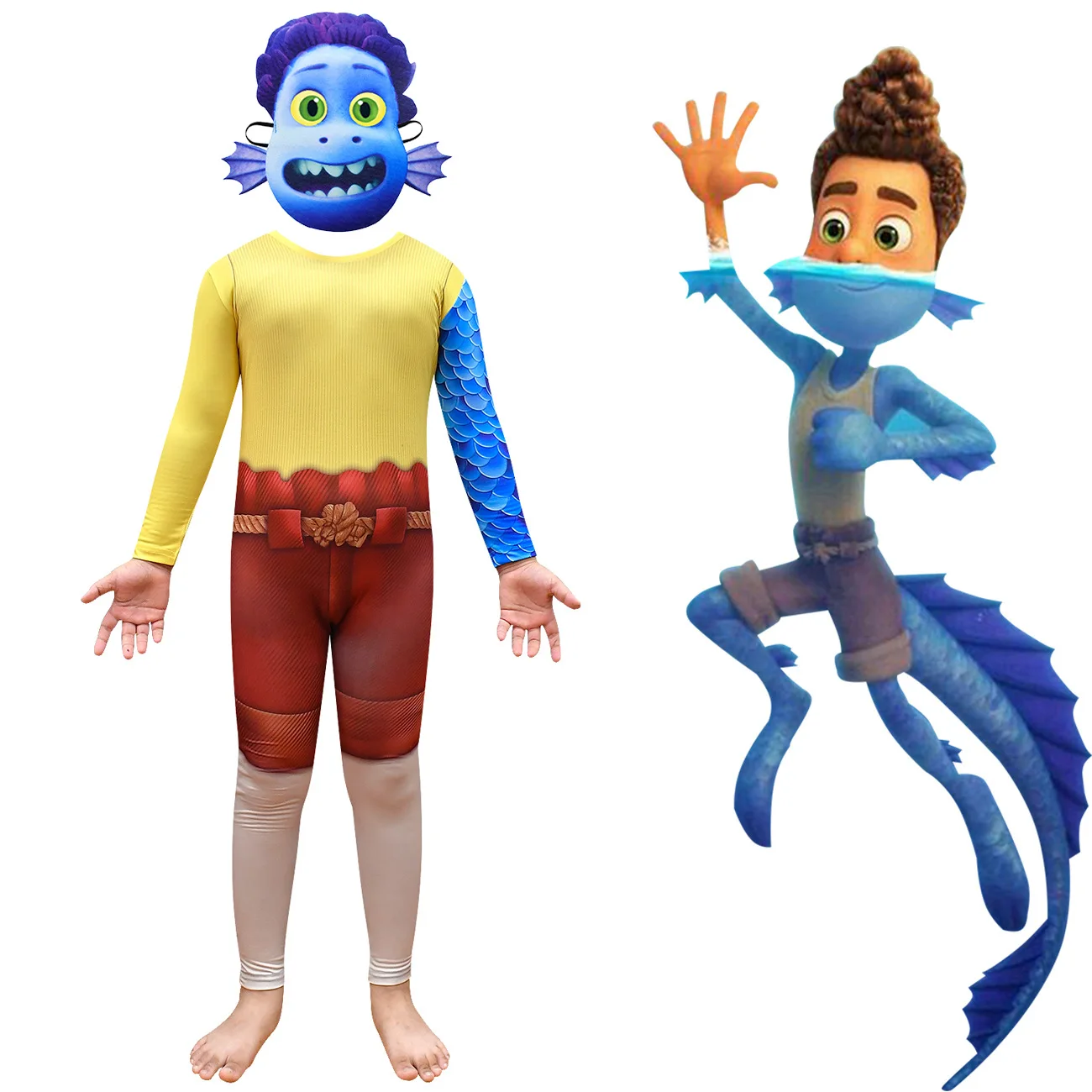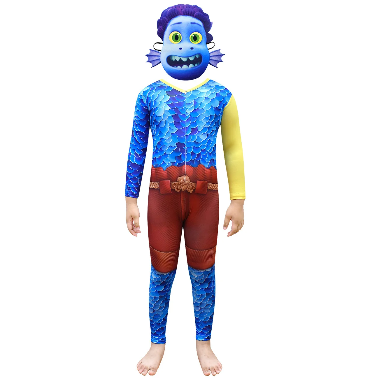 Disney Luca Sea Monster/костюм для детей на Хэллоуин, боди для мальчиков, костюм для косплея, комбинезон для девочек с 3D маской, комплект одежды для От 3 до 12 лет