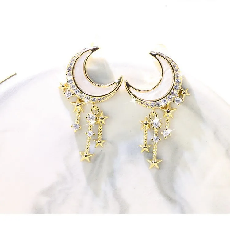Серьги-подвески из серебра S925 пробы, простые темпераментные серьги-гвоздики в виде звезды, Луны, ювелирные аксессуары