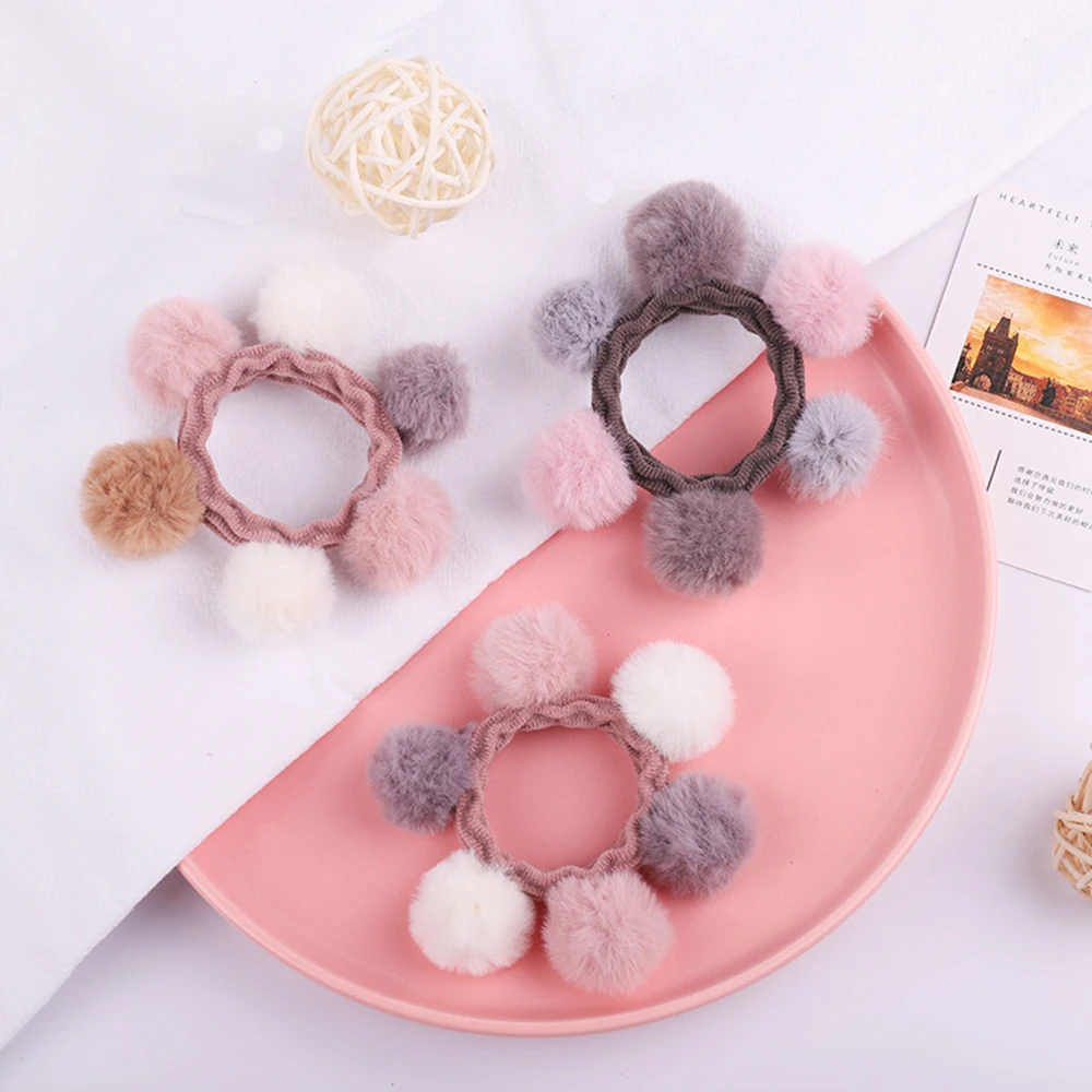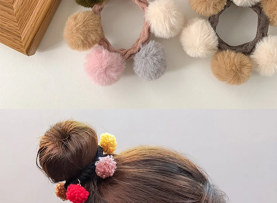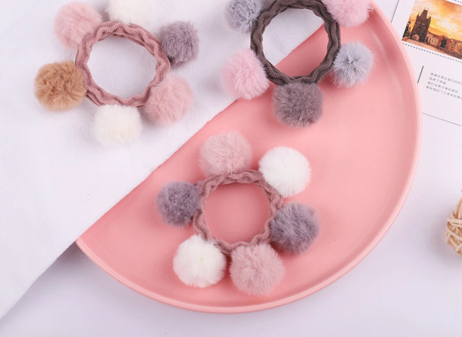 Корейские модные аксессуары, ленты для волос, цветные пушистые шарики, галстуки для волос, милые мягкие помпоны, резинки с милым бантом, эластичная повязка на голову