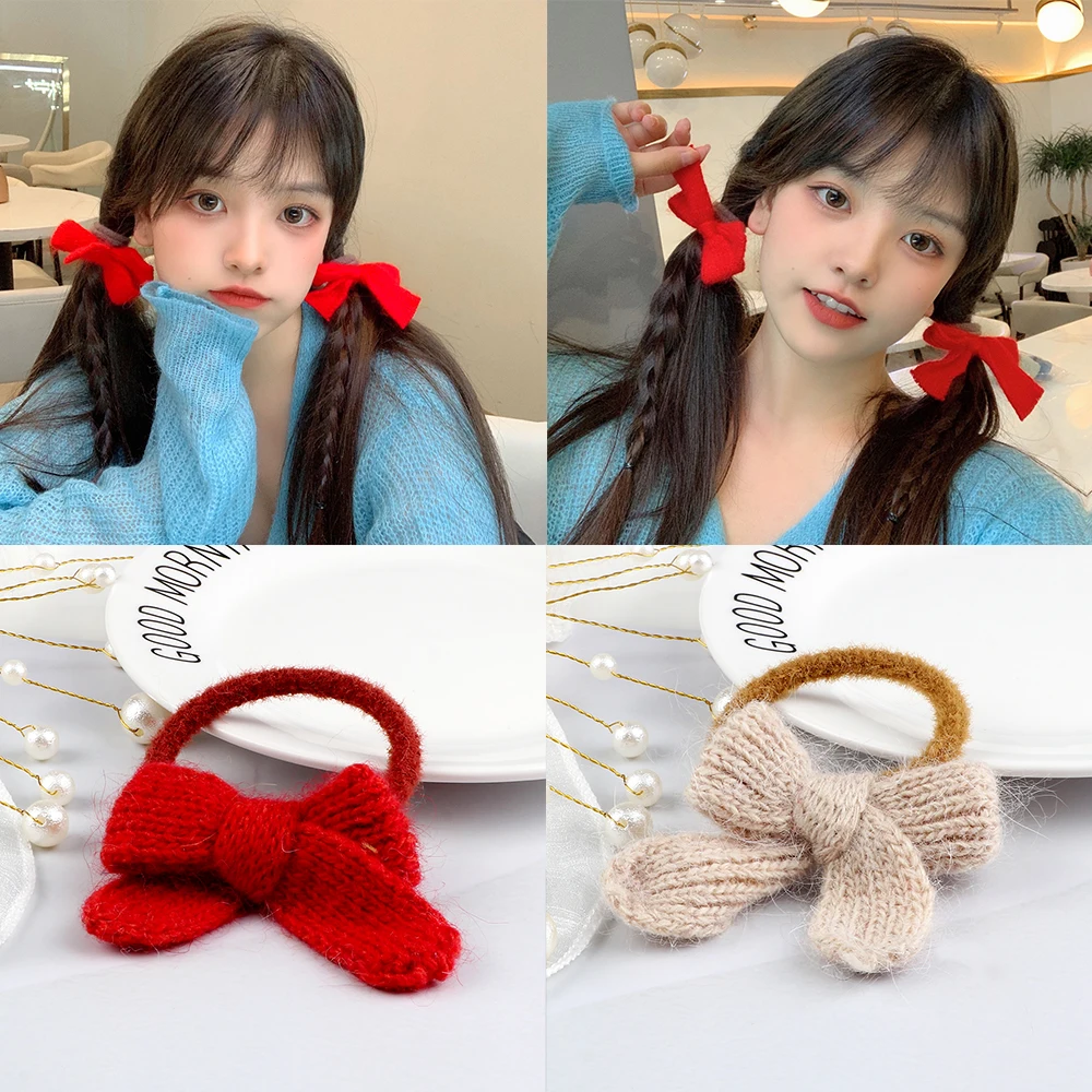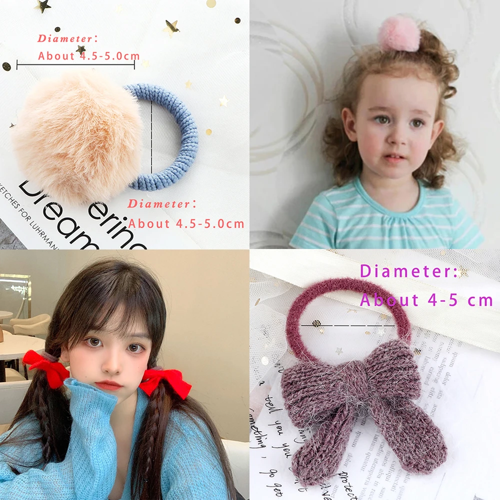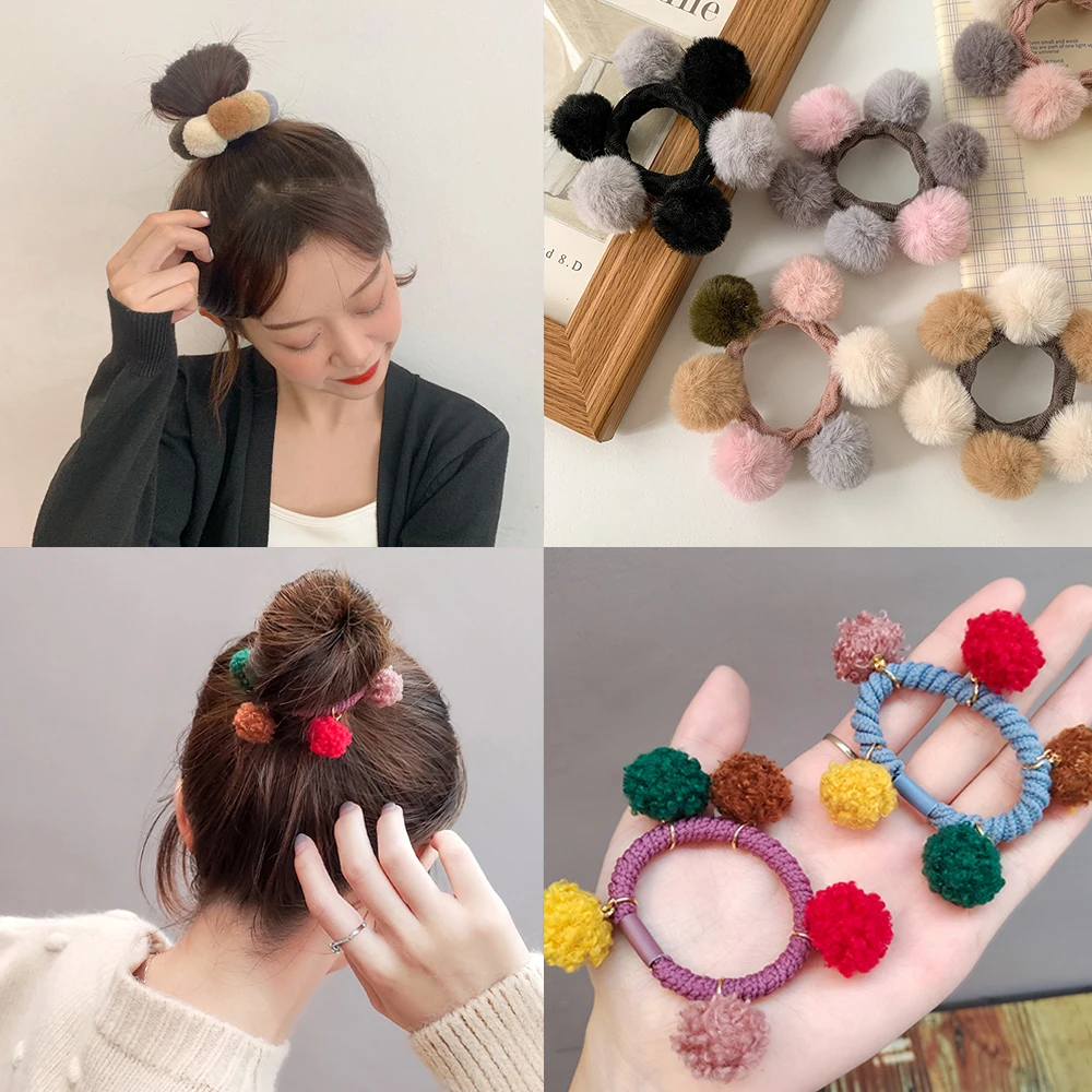 Корейская мода, яркие пушистые шарики, резинки для волос, милые мягкие резинки с помпонами, милые эластичные повязки с бантом