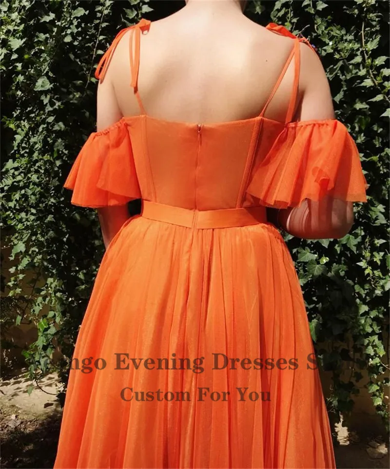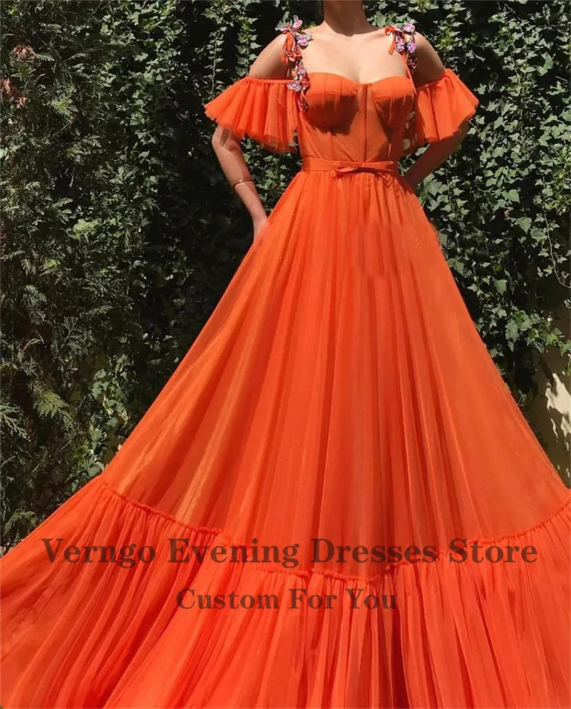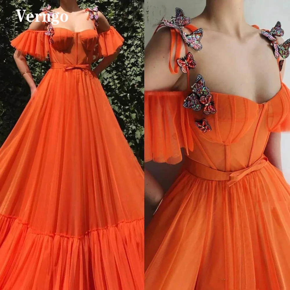 Оранжевое Тюлевое вечернее платье-трапеция Verngo с открытыми плечами и бабочками, корсет, длинные платья для выпускного вечера, платье для особых случаев, 2021
