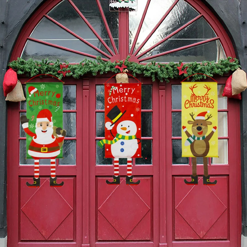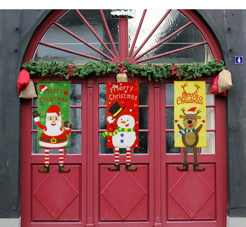 115*40 см Баннер с Санта-Клаусом, флаг, дверь, окно, Настенный деко...