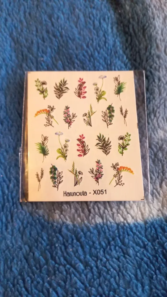 Наклейки для маникюра Harunouta, черные, синие, мраморные, цветущие, геометрические, с цветами, листьями, деревьями