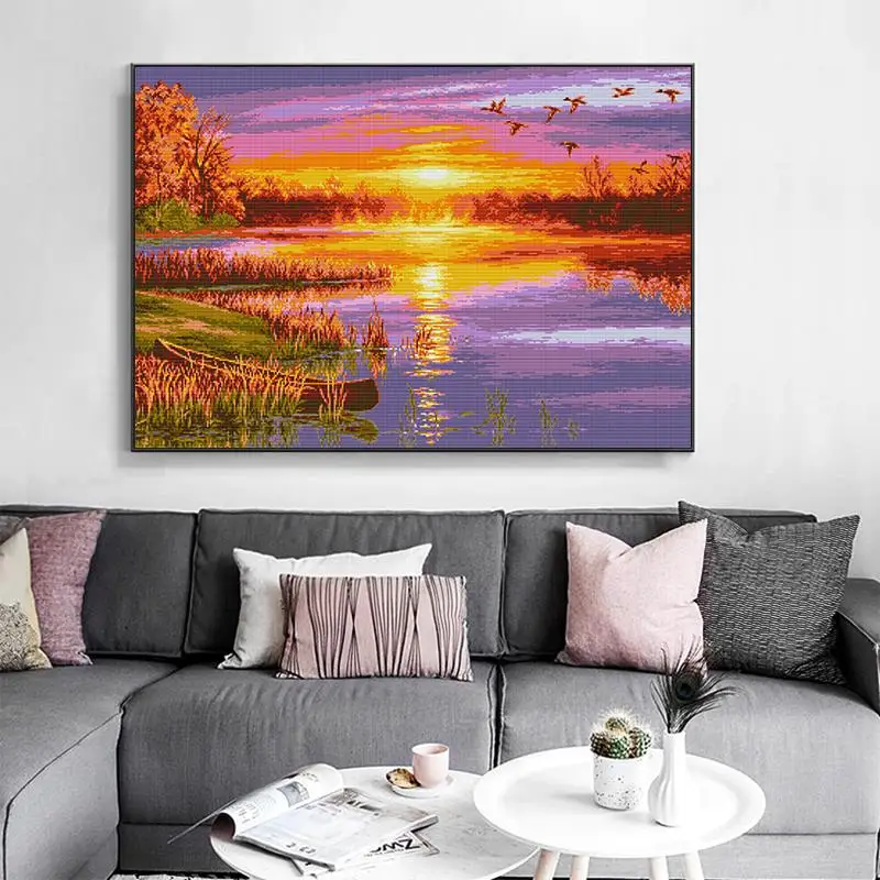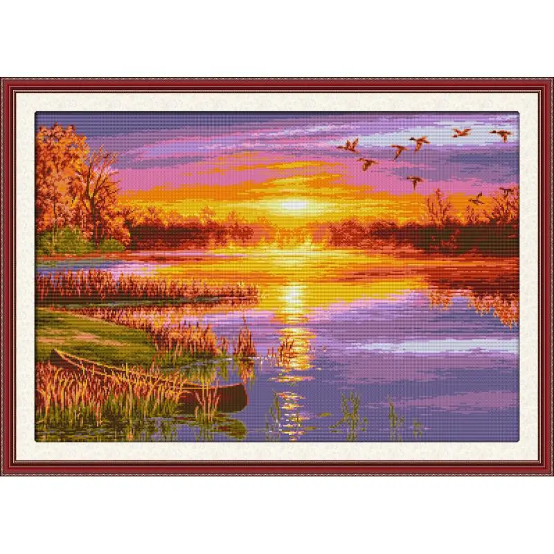 Набор для вышивки крестиком Осенний закат, Набор для вышивки сделай сам, пейзаж, Рисунок 14 карат, 11 карат, печать на холсте, наборы для рукоделия, домашние декоративные поделки