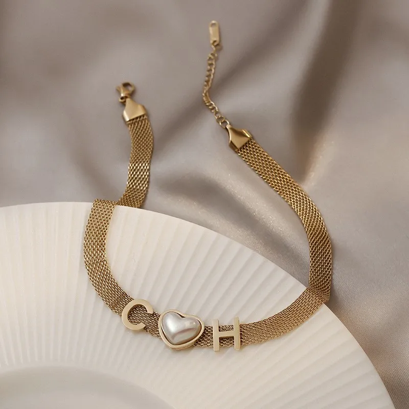 Женский браслет MEYRROYU, браслет из нержавеющей стали золотого цвета с буквой C H и жемчугом в форме сердца, Ювелирное Украшение для вечеринки, 2021