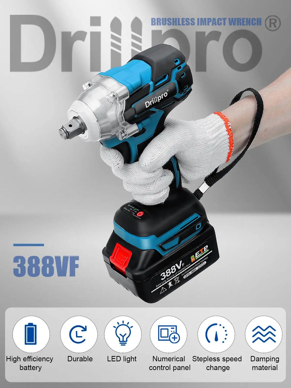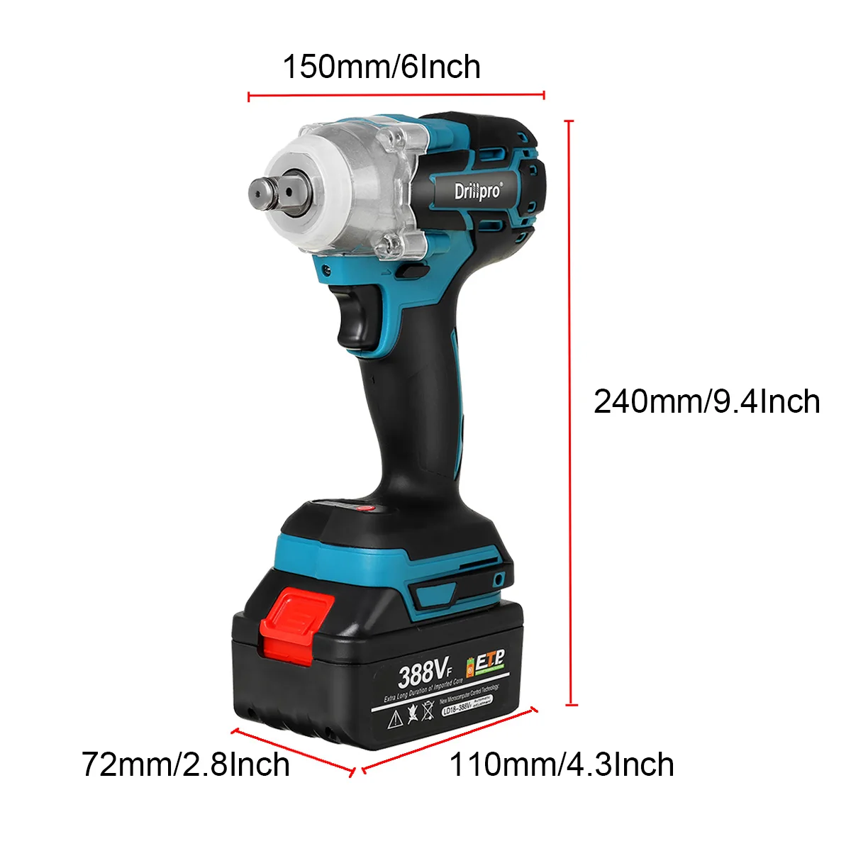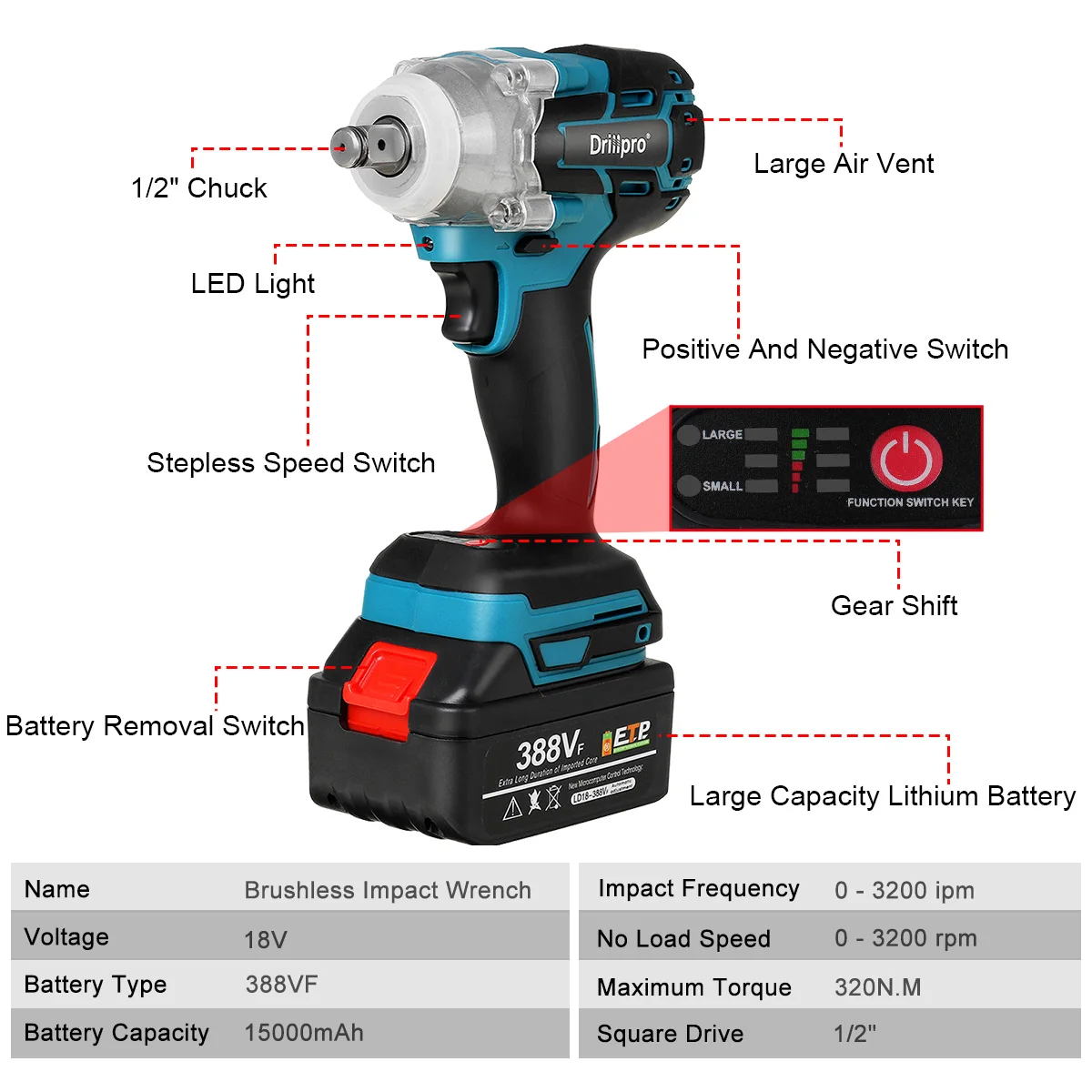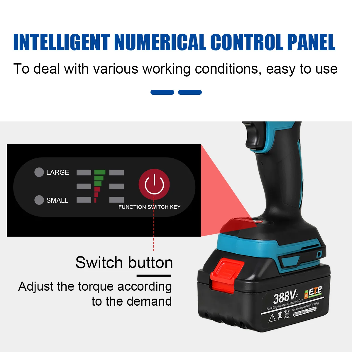 12 нм бесщеточный беспроводной электрический ударный гайковерт дюйма электроинструменты с литиевой батареей + светодиодная подсветка для батареи Makita 18 в