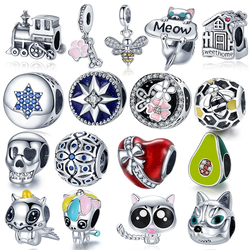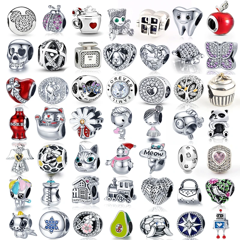 Лидер продаж, бусины-шармы для браслета Pandora, серебро 925 пробы