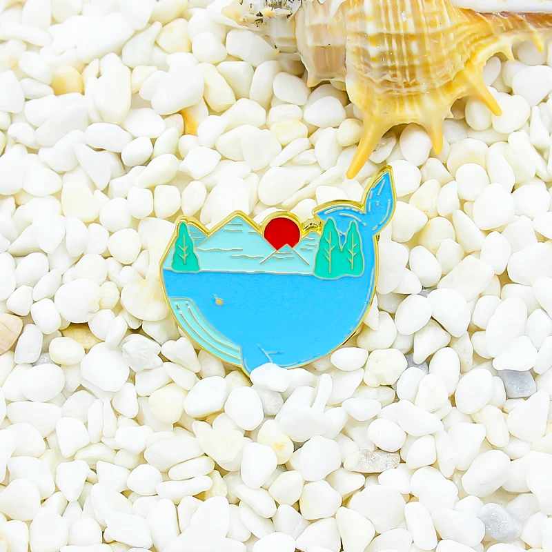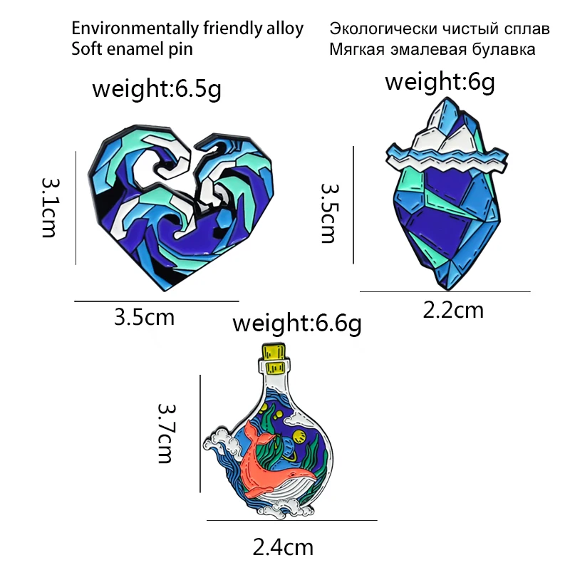 Эмалированная брошь на лацкан с изображением синего моря, айсберга, сердца, морской воды, китов, морских водорослей