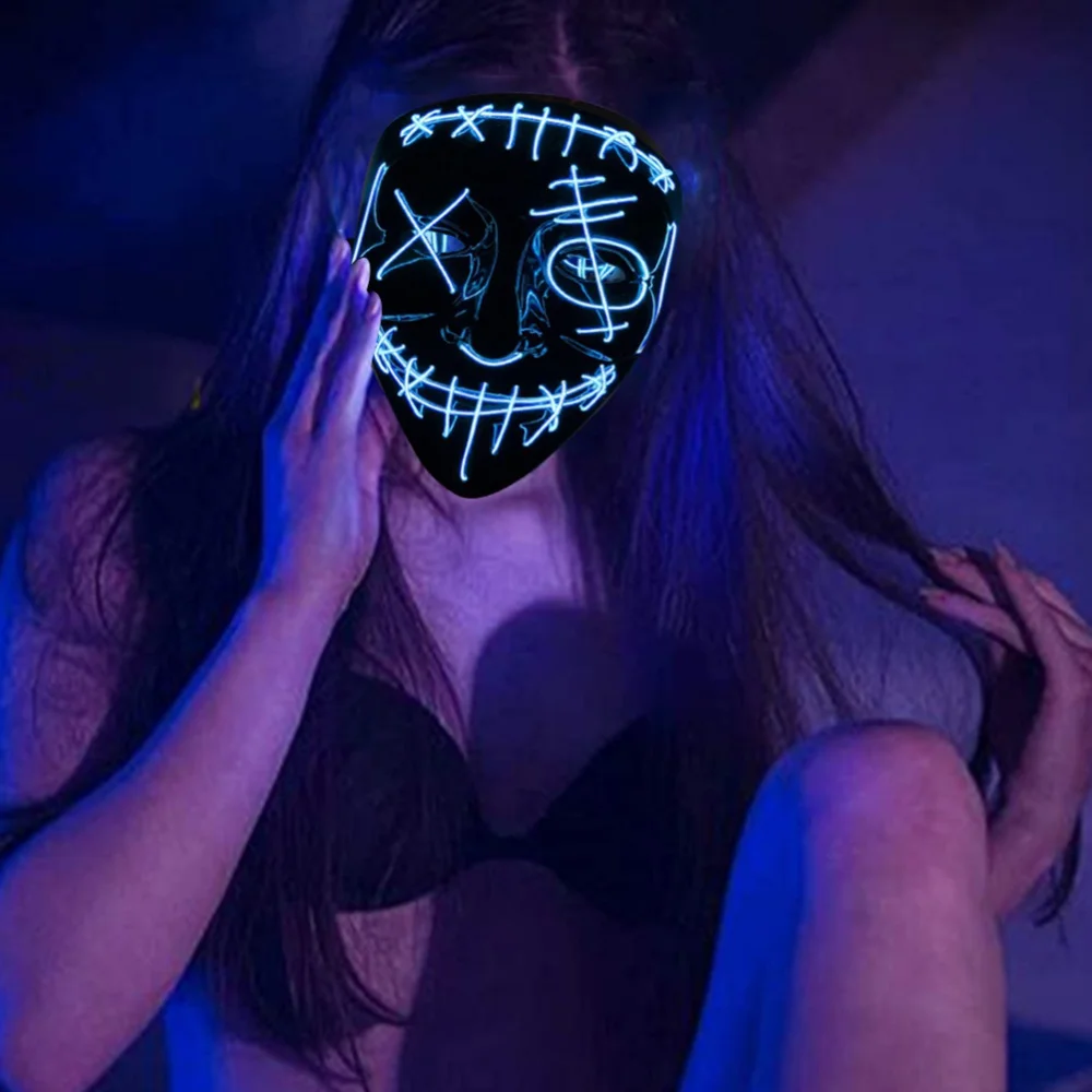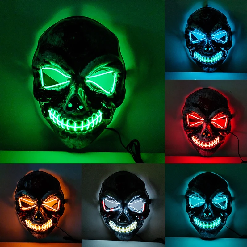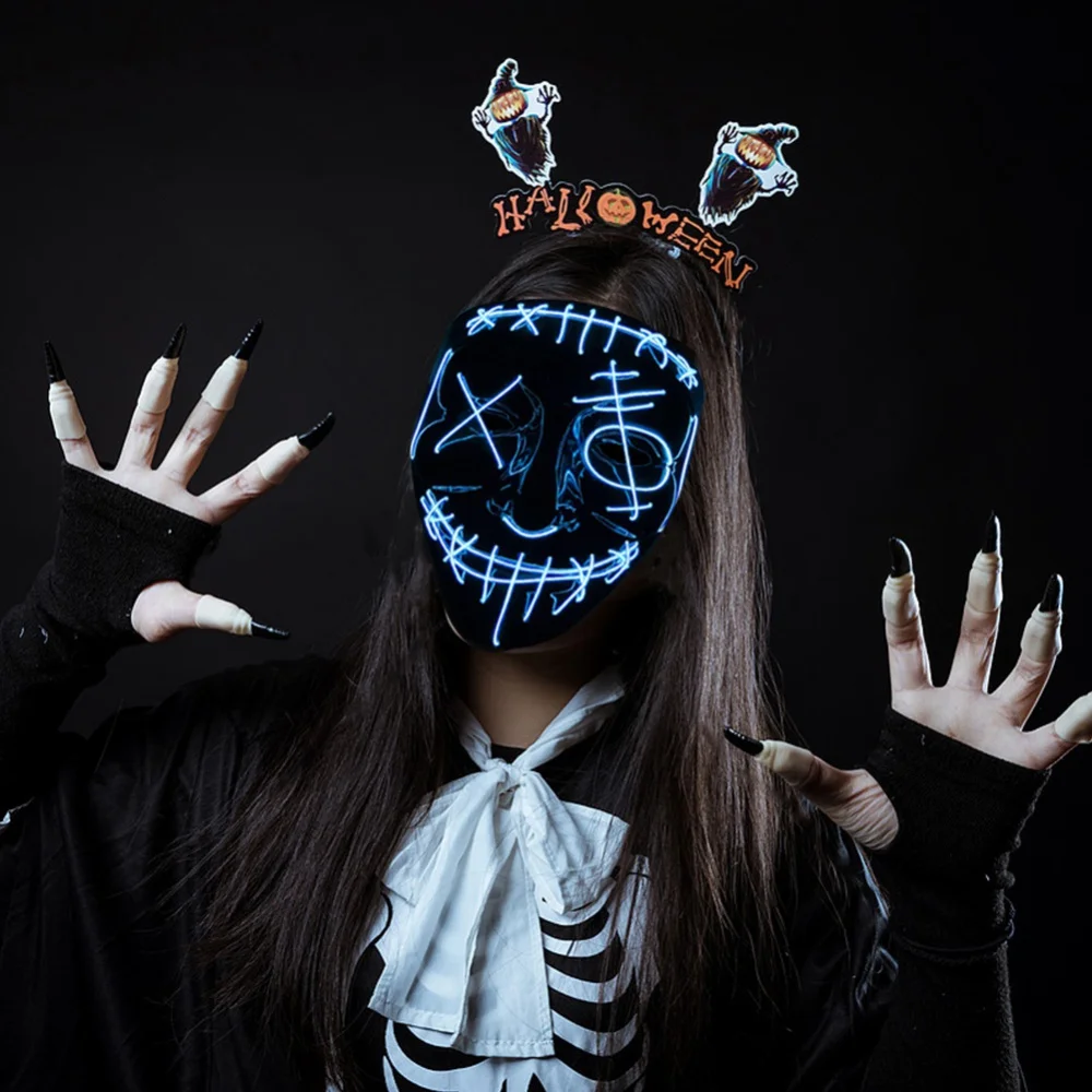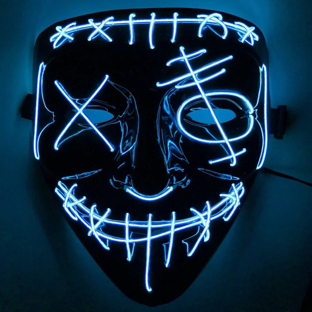 Светодиодная маска для Хэллоуина, маскарадный костюм, DJ-вечеринка светильник ящиеся неоновые маски, светящиеся в темноте
