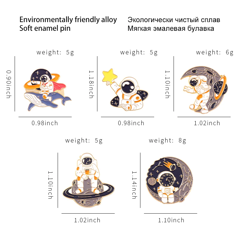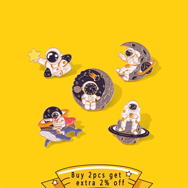 Металлическая брошь с эмалью, в форме астронавта, планеты, ракеты, ...