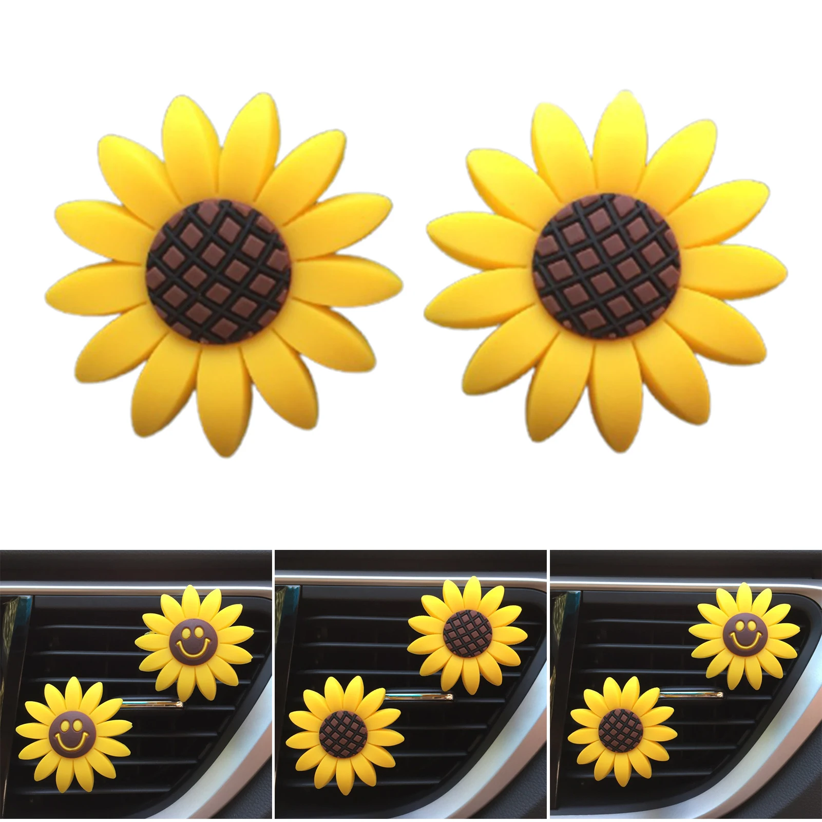 1. Наш автомобильный зажим для ароматизатора воздуха изготовлен из резинового материала, износостойкий, не легко деформируется и прочный.2. Простота в использовании: Просто подключите его к вентилятору автомобиля. Он может быть исправлен хорошо и не будет падать во время столкновения.3. Автозапчасти для подсолнуха являются абсолютно идеальными подарками, любому водителю это понравится. Высокое качество, классический дизайн, приятный запах, приятный цвет, украшает интерьер любого автомобиля.4. Как использовать: Откройте посылка, откройте контейнер и аккуратно нажмите, чтобы зафиксировать его в проветриваемом месте автомобиля.5. Этот милый и стильный аксессуар для вентиляции подсолнуха сделает каждую поездку более приятной, привнеся цвет, положительное настроение и свежий и приятный аромат для вашего автомобиля. Самое главное, что вы можете налить любые другие духи на ватный диск после того, как включена эссенция закончена, и в то же время использовать Подсолнух аксессуары в качестве постоянного украшения в автомобиле.