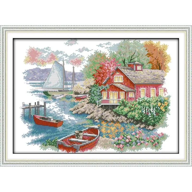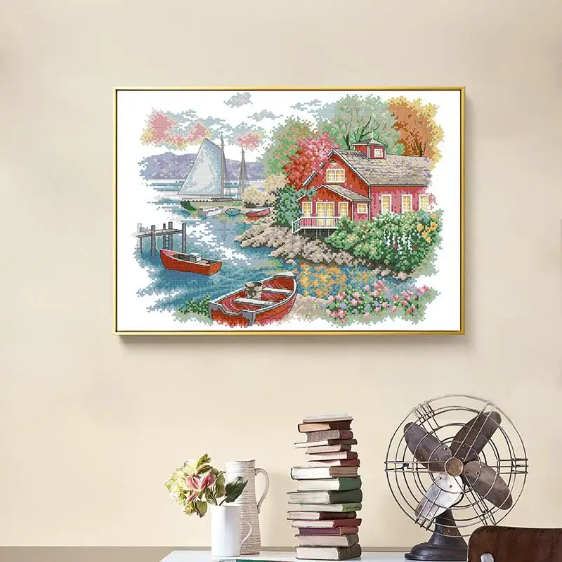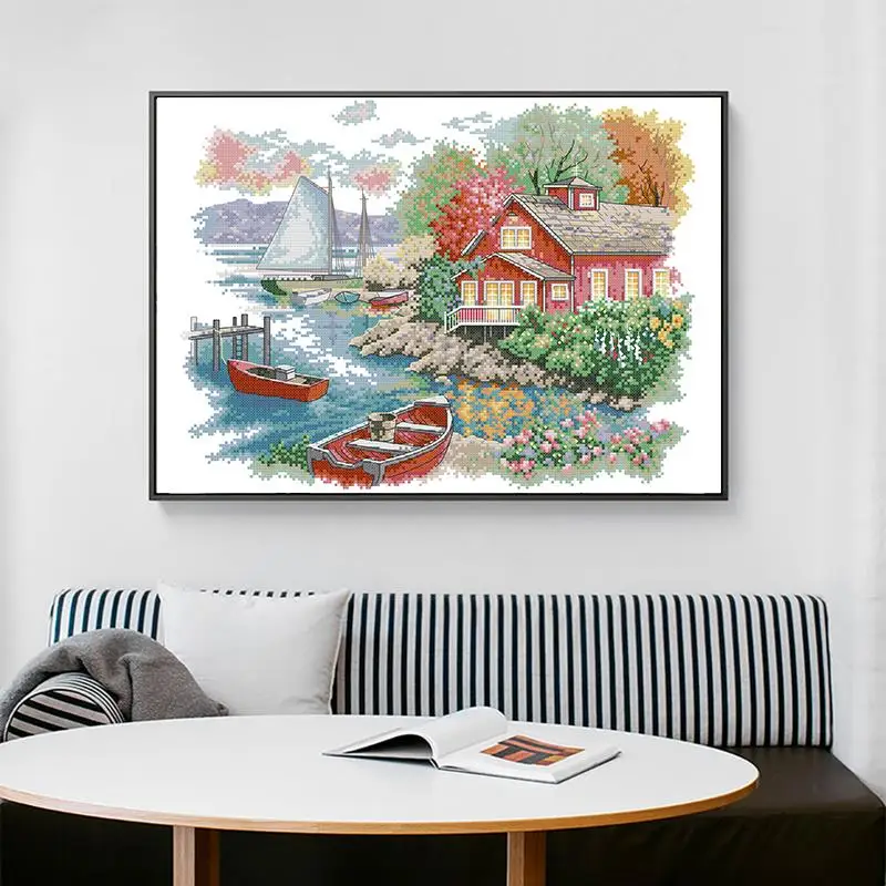 Набор для вышивания крестиком с изображением пейзажа на берегу озера Aida 11CT 14CT, набор для рукоделия из счетного холста, подарки для домашнего декора