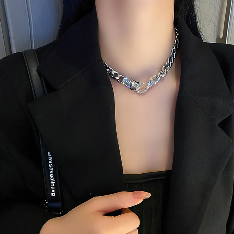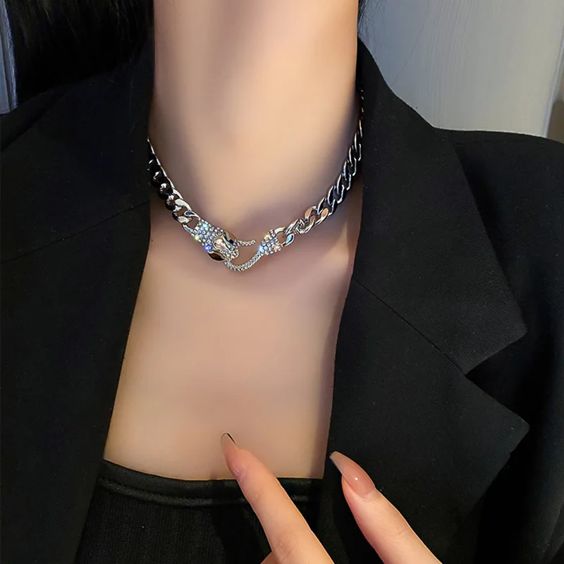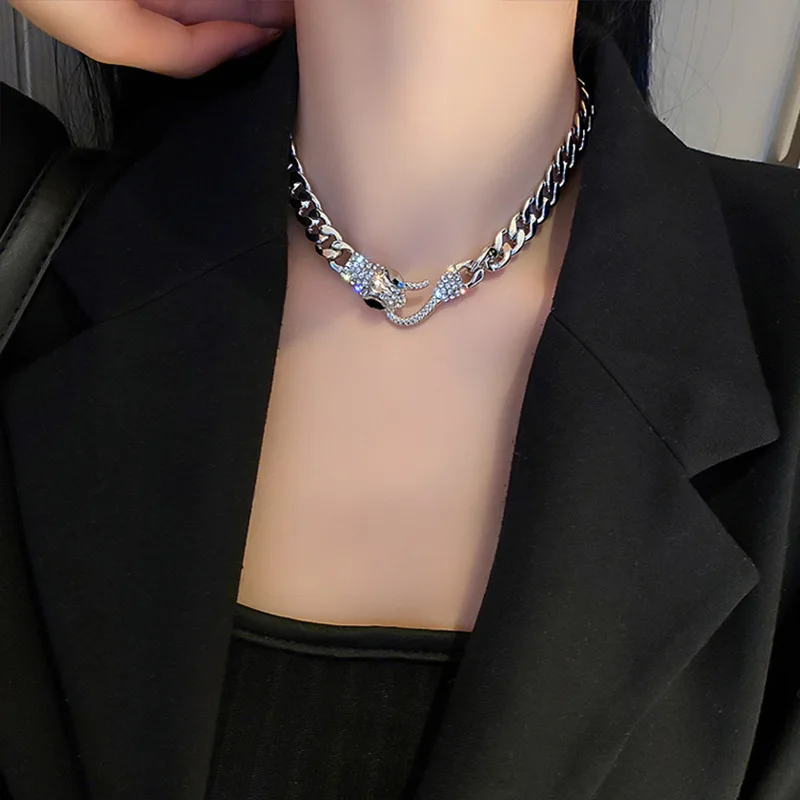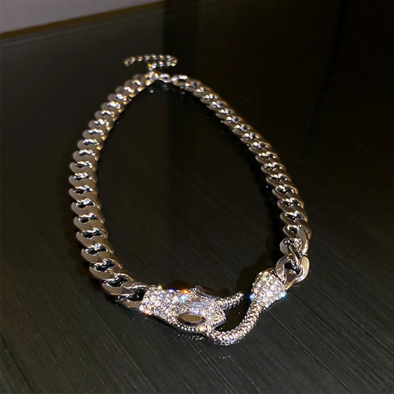Роскошное Короткое женское ожерелье со змеиным кубическим цирконием, элегантное простое вечернее Ювелирное Украшение в стиле панк с цепочкой до ключиц