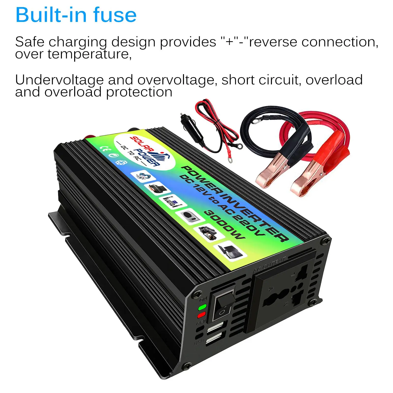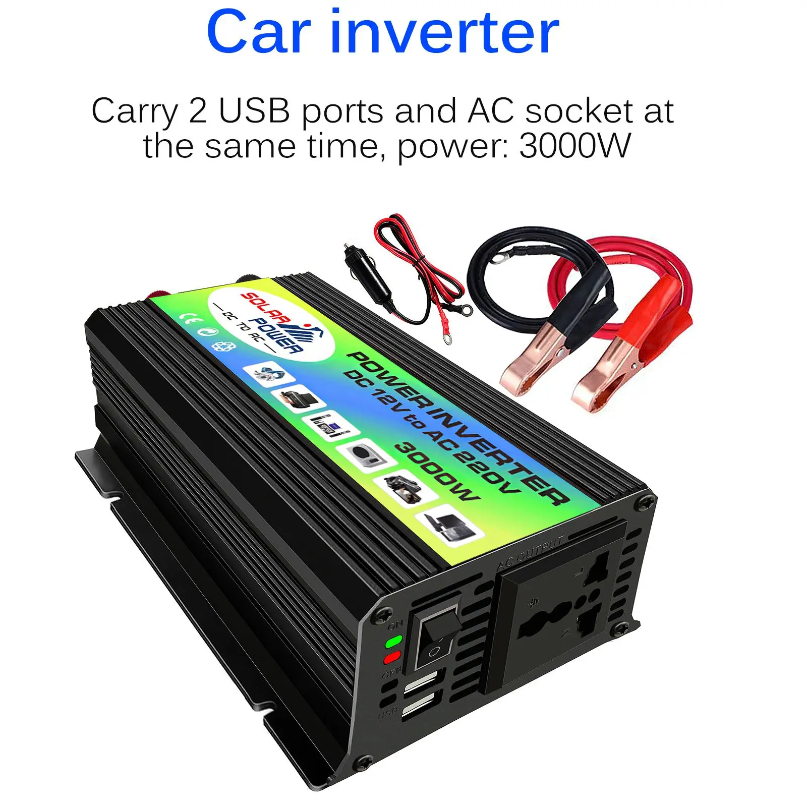 Автомобильный преобразователь напряжения, 12-220 В, два USB, 3000 Вт, макс. с дисплеем напряжения