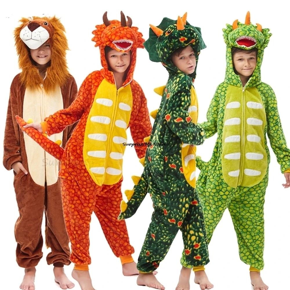 Детские пижамы динозавр Лев пижамы дети животные кигуруми костюм му...