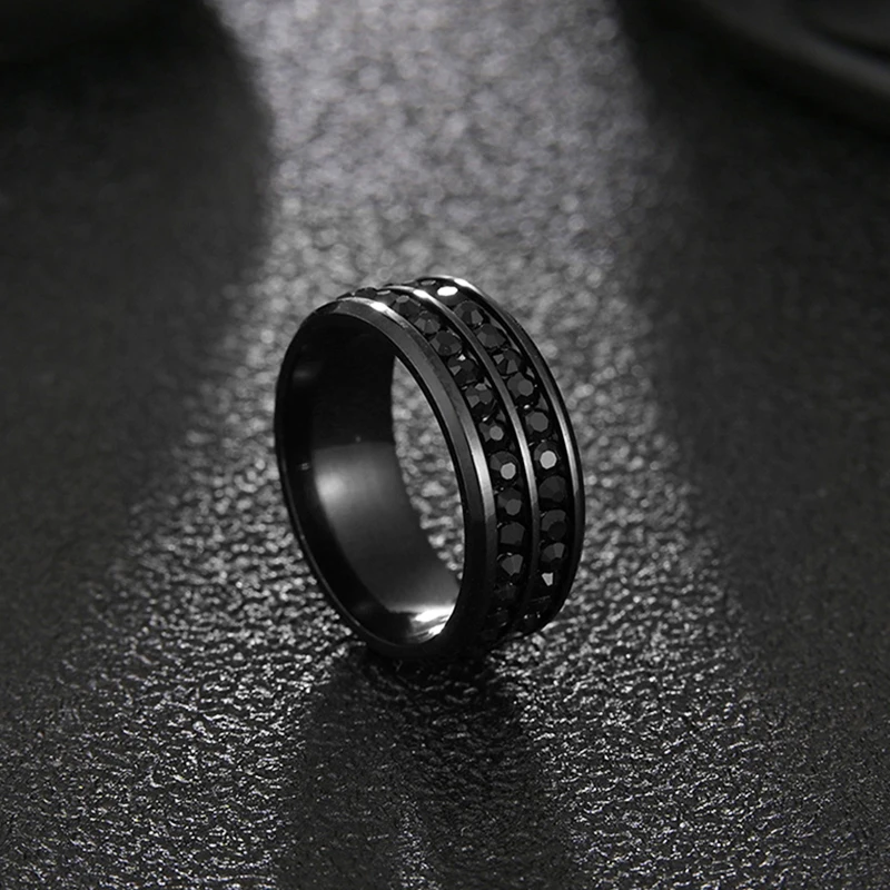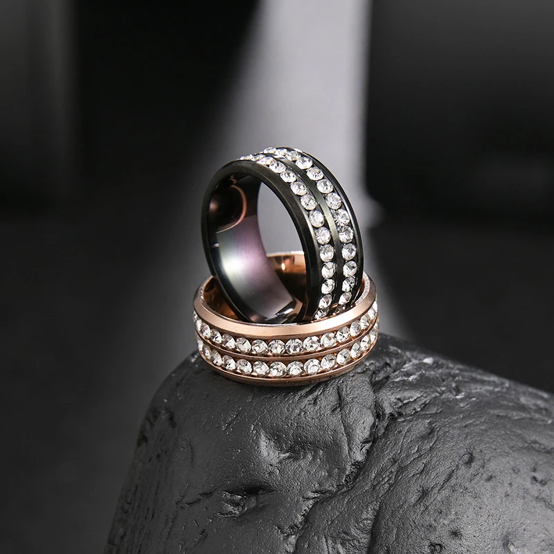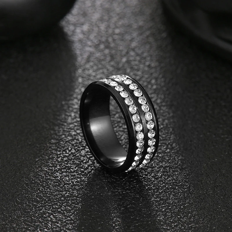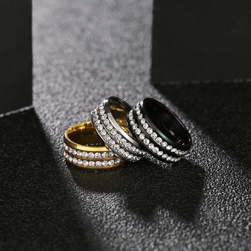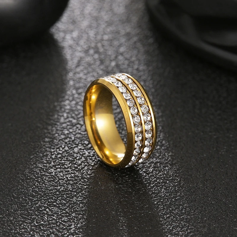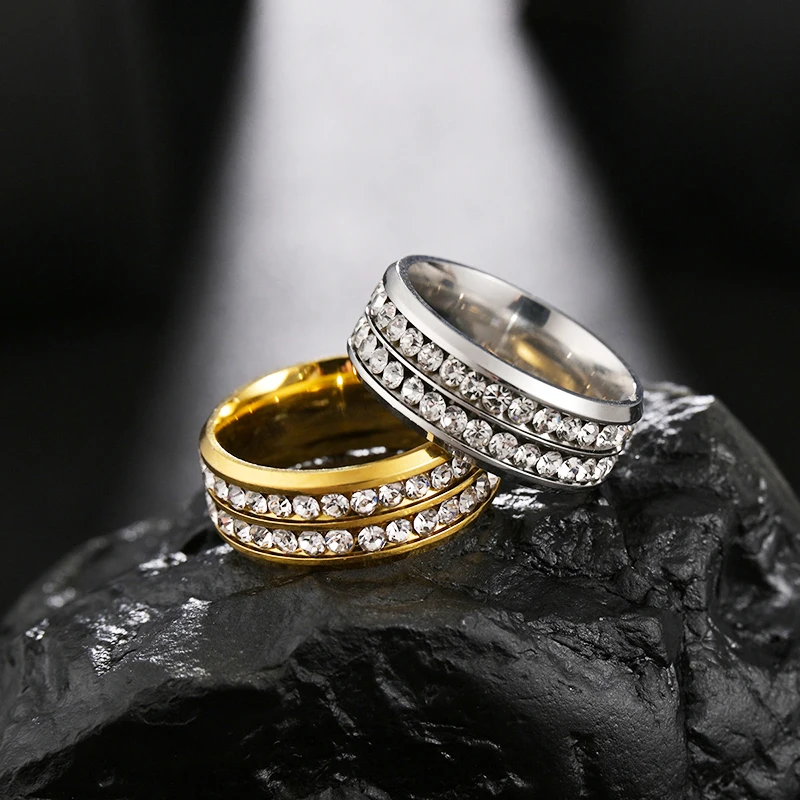 Новинка, Двухрядное свадебное кольцо с кристаллами, Классическая нержавеющая сталь, парные кольца для влюбленных, Подарок на годовщину