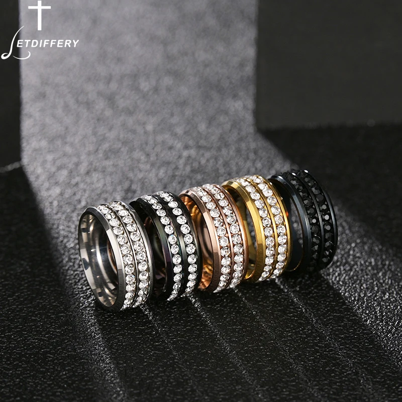 Letdiffery Новое Двухрядное Кристальное свадебное кольцо Классические парные кольца для влюбленных из нержавеющей стали Подарок на годовщину Святого Валентина