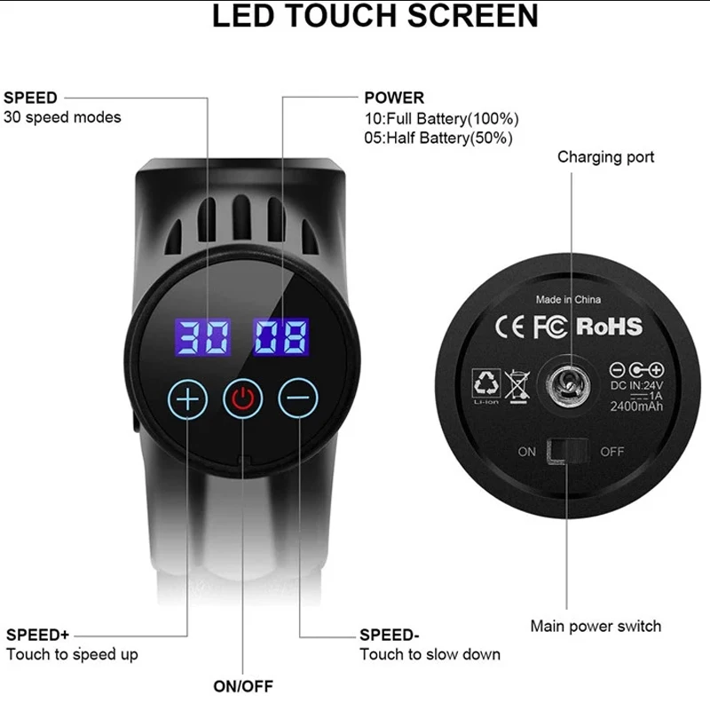 Массажный пистолет с ЖК-дисплеем, высокочастотный Электрический массажер для расслабления мышц и всего тела с портативным чехлом, пистолет для терапии и фитнеса