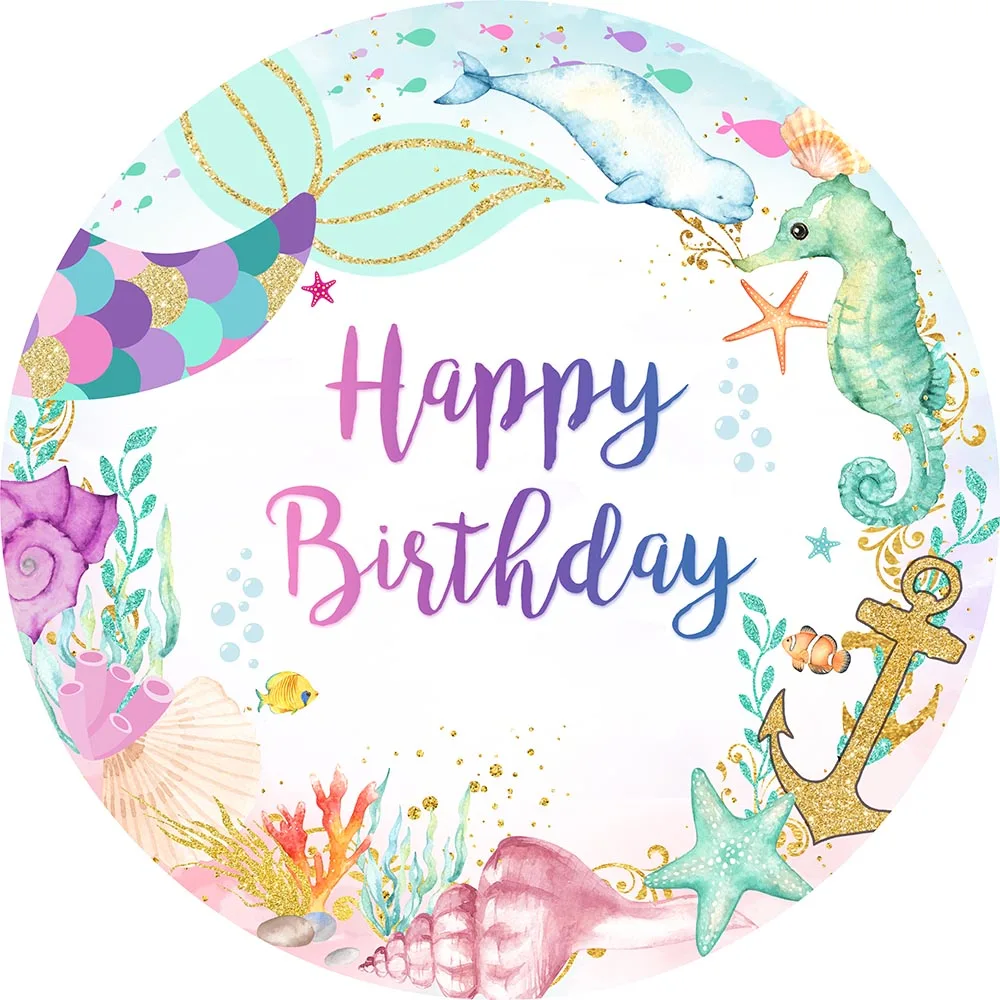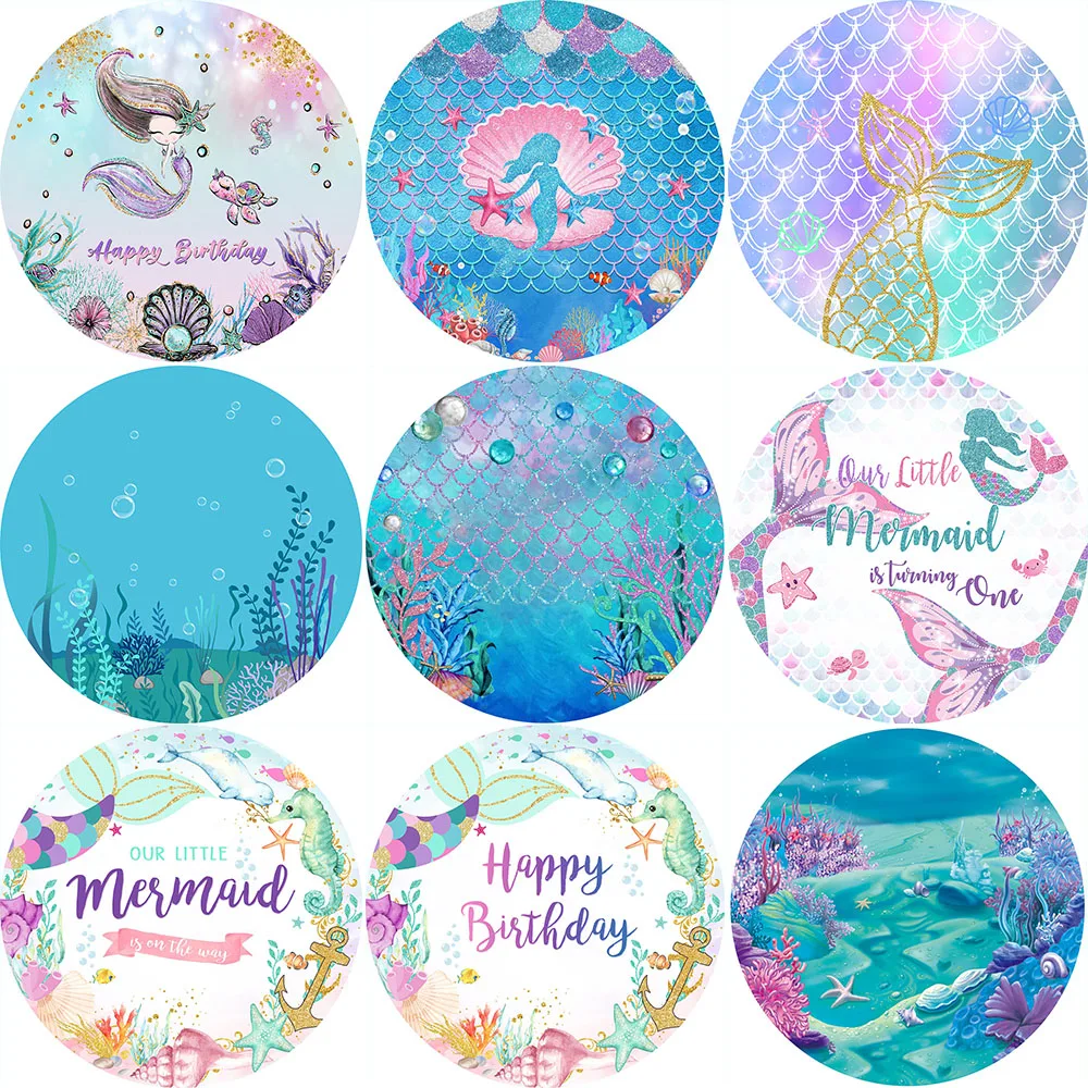Круглая Русалка торт на день рождения разбиваемый фон под морем Радуга Рыба весы фон круг детский день рождения украшения