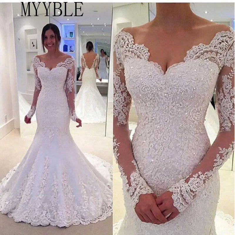 MYYBLE Новые свадебные платья с длинным рукавом Русалка 2022 кружевное недорогое свадебное платье для невесты реальные фотографии Vestido De Noiva на заказ