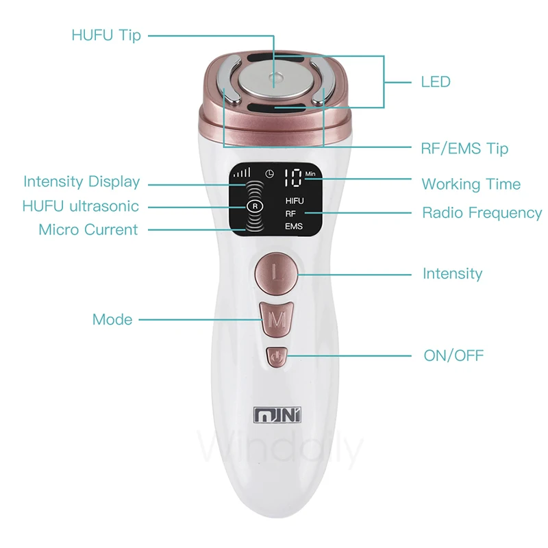 HIFU:Средство против старения лица и уменьшения морщин, истончение лица, лифтинг и подтягивание кожи, затягивание свободной кожи вокруг глаз, стимулирование поглощения.1) Мощность: 5J/cm22) Активная площадь: 4см23) Частота: 3 МГц4) Глубина роли: 3-3,5-4,5 ммRF:Радиочастотная подтяжка кожи с использованием новейшей биполярной радиочастотной технологии, без побочных эффектов. Встроенная система безопасности, которая автоматически регулирует энергию в зависимости от температуры вашей кожи.1) Мощность: 4J/CM22) Активная площадь: 3 см23) Частота: 2 МГц4) Глубина роли: 3 ммEMS:1) 15 Вт2) 500 мАчПортативное устройство для ухода за кожей, чтобы поднять кожу, уменьшает появление морщин, в основном используется для подтяжки кожи лица, приклеивается к использованию этих устройств для лица, чтобы достичь эффекта удаления морщин, устранения тонких линий и лифтинга лица.Светодиодный:1) Длина волны: 650 нм2) Прочность: 5000mcd3) Выходная мощность: 4J/CM2Целевая область: лицо, глаза, шеяПосылка включает в себя:1 х мини HiFU машина1 х адаптер питания1 x Руководство пользователя