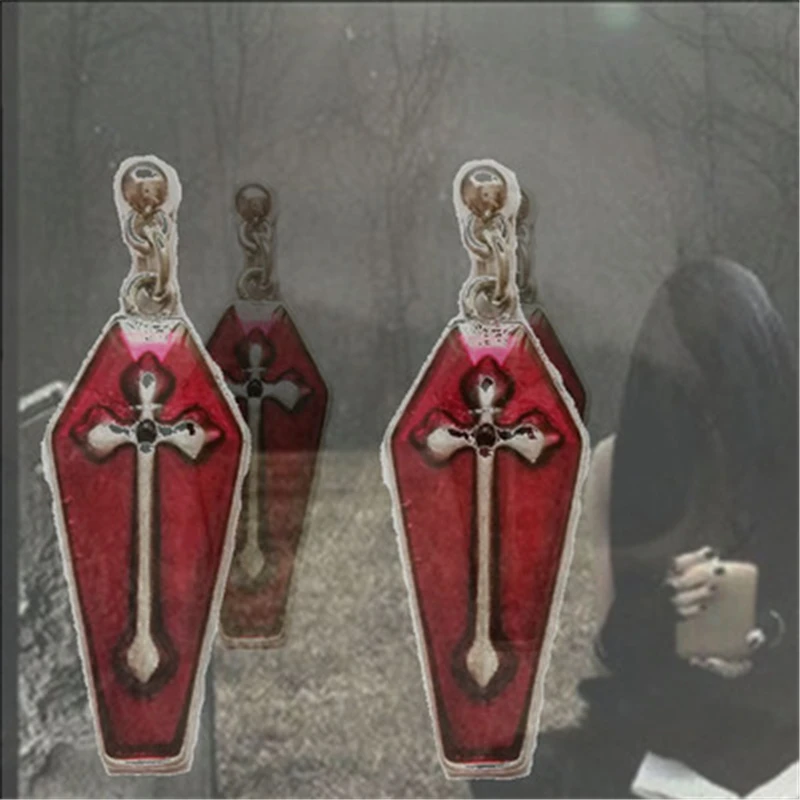 OTOKY серьга в готическом стиле для женщин панк летучая мышь сердце череп крест гроб паук змея Луна Подвески страшные ювелирные изделия Y2K