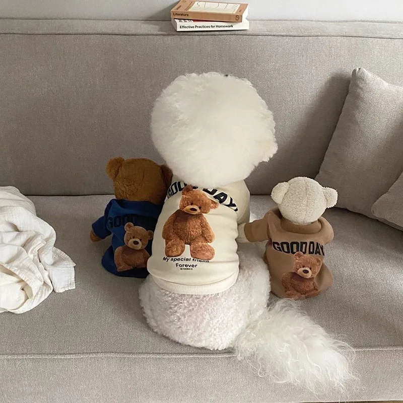Мультяшные толстовки с изображением медведя собаки, милая хлопковая искусственная куртка для щенка маленького и среднего размера, куртка с изображением французского бульдога чихуахуа