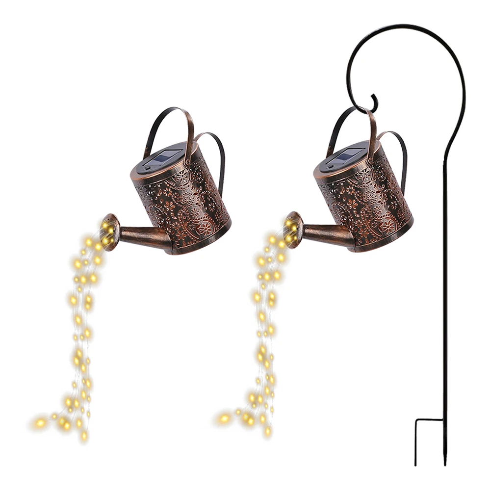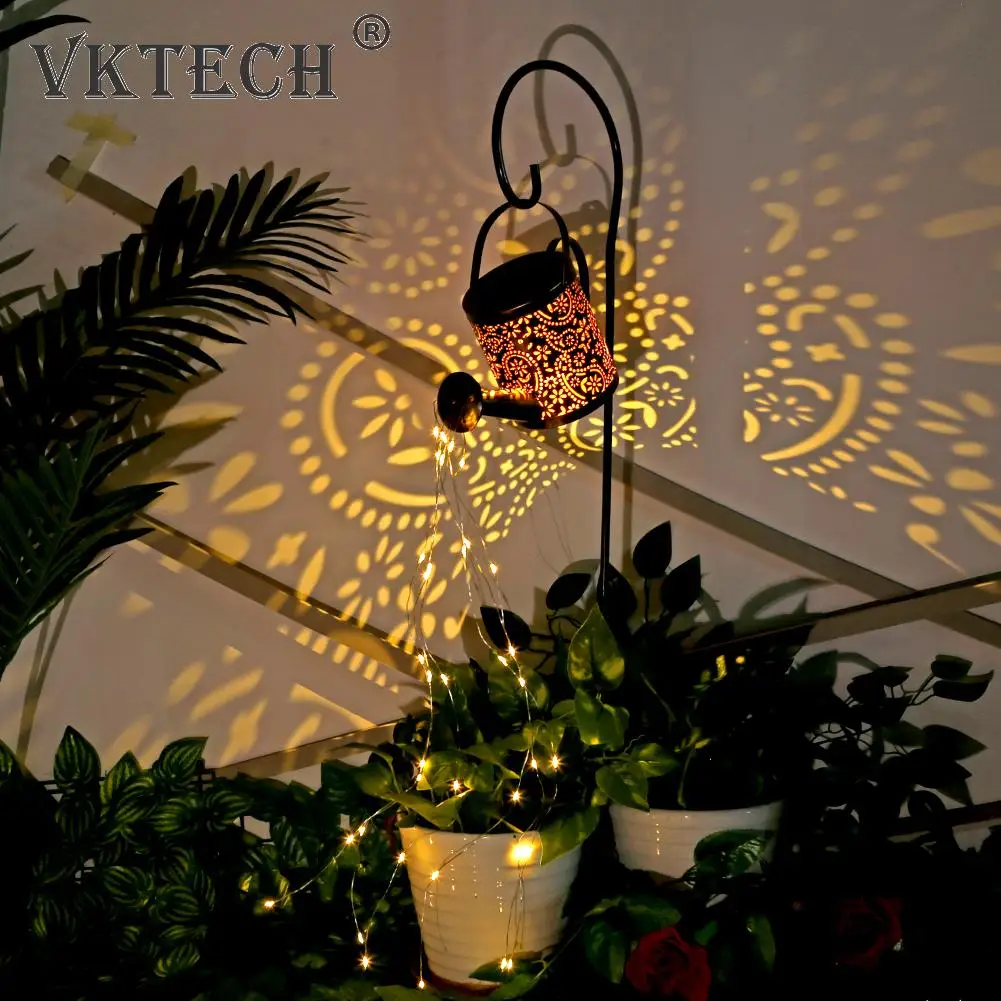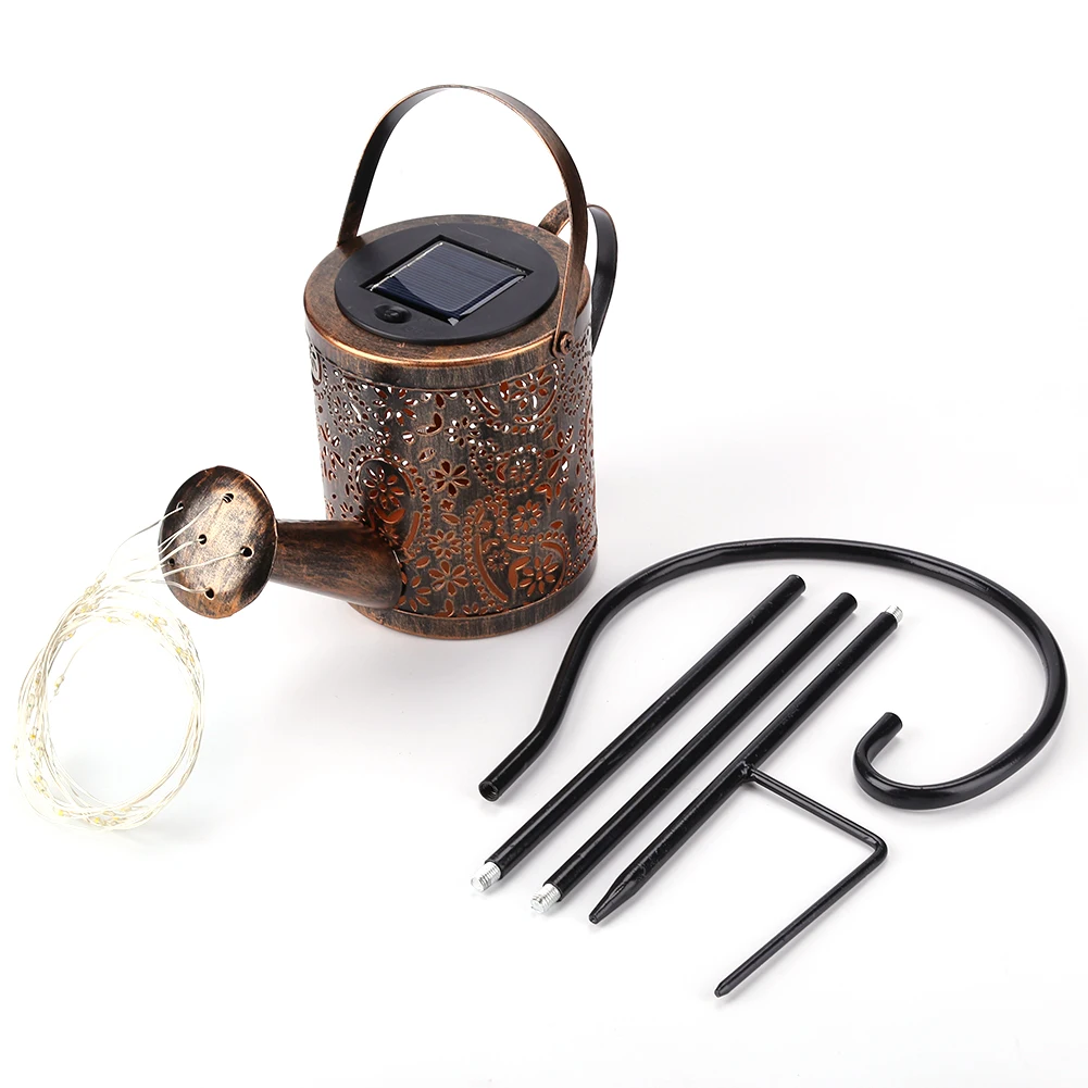 Светодиодный чайник на солнечной батарее, Сказочная лампа из кованого железа для полива цветов, для улицы, водонепроницаемый светильник для двора, светильник ное украшение для сада