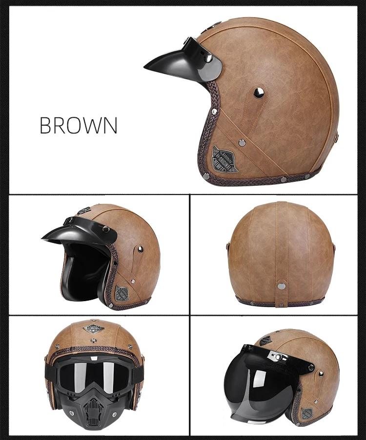 Шлем мотоциклетный мужскойженский, винтажный, с открытым лицом, 34