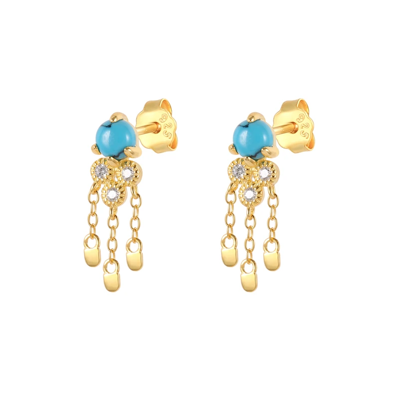 Серьги-гвоздики женские из серебра 100% пробы с бирюзовым цирконием