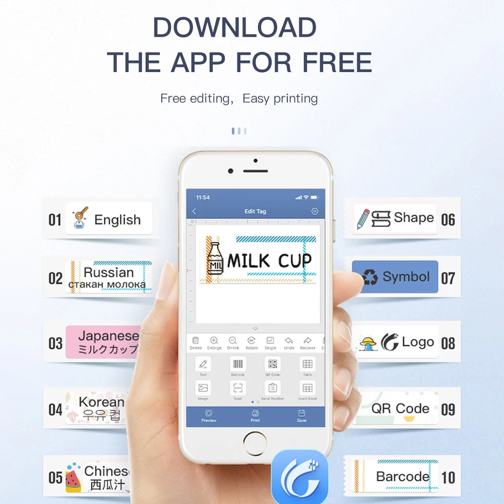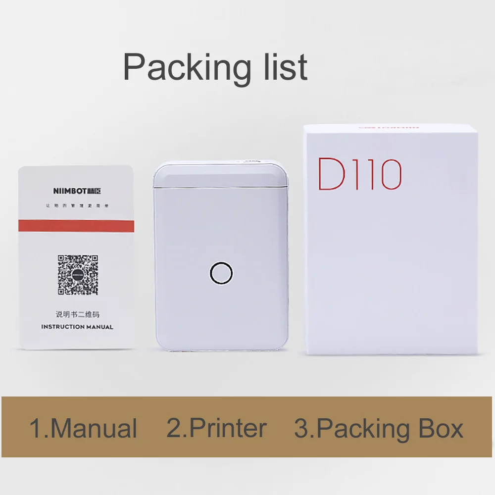 Принтер для этикеток Niimbot D110 с Bluetooth, портативный карманный принтер для этикеток, наклейка для домашнего офиса со штрих-кодом