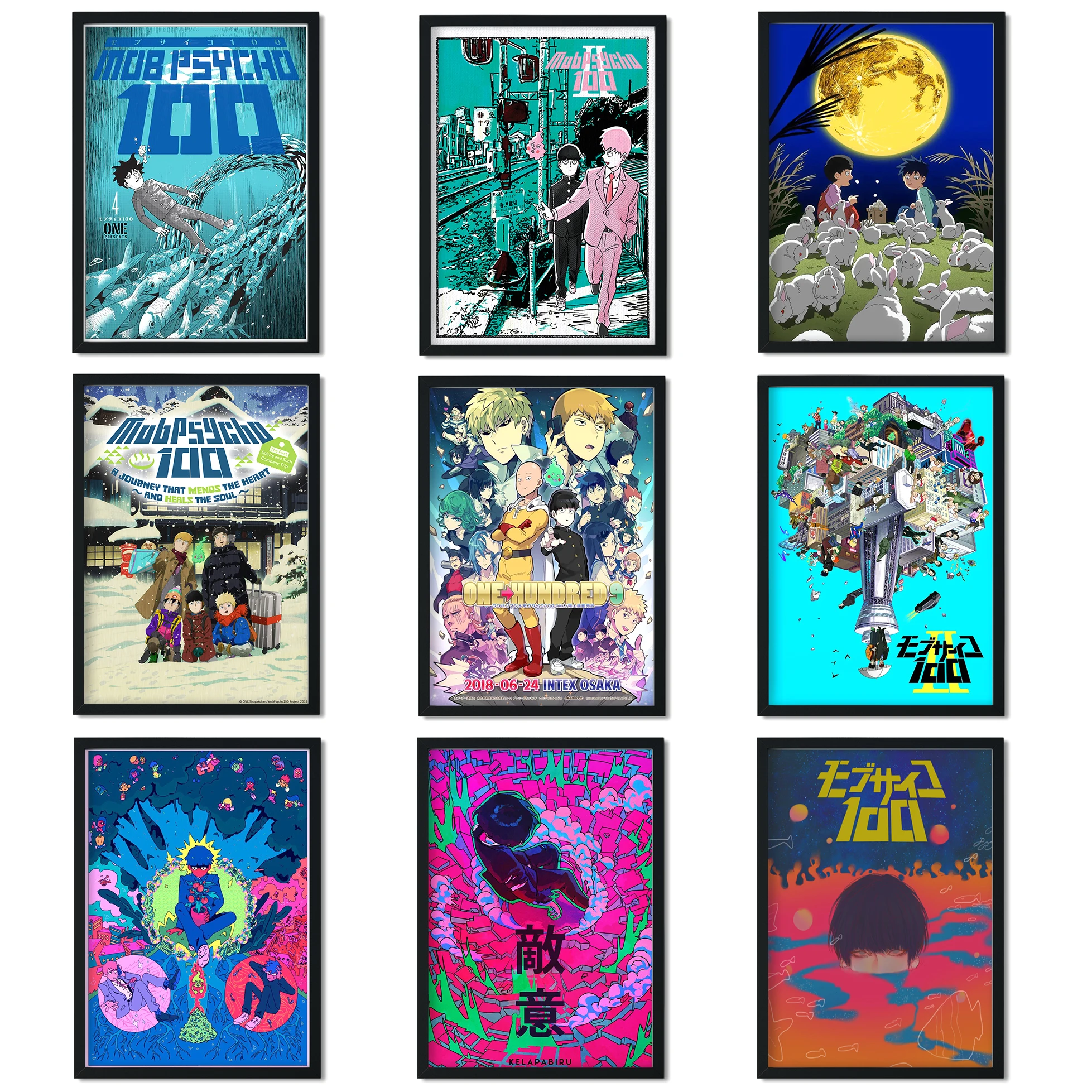 Японская фигурка аниме, Постер психолита 100, картина Synthwave, настенное искусство, украшение для дома, кавайное украшение для комнаты, Холщовый постер