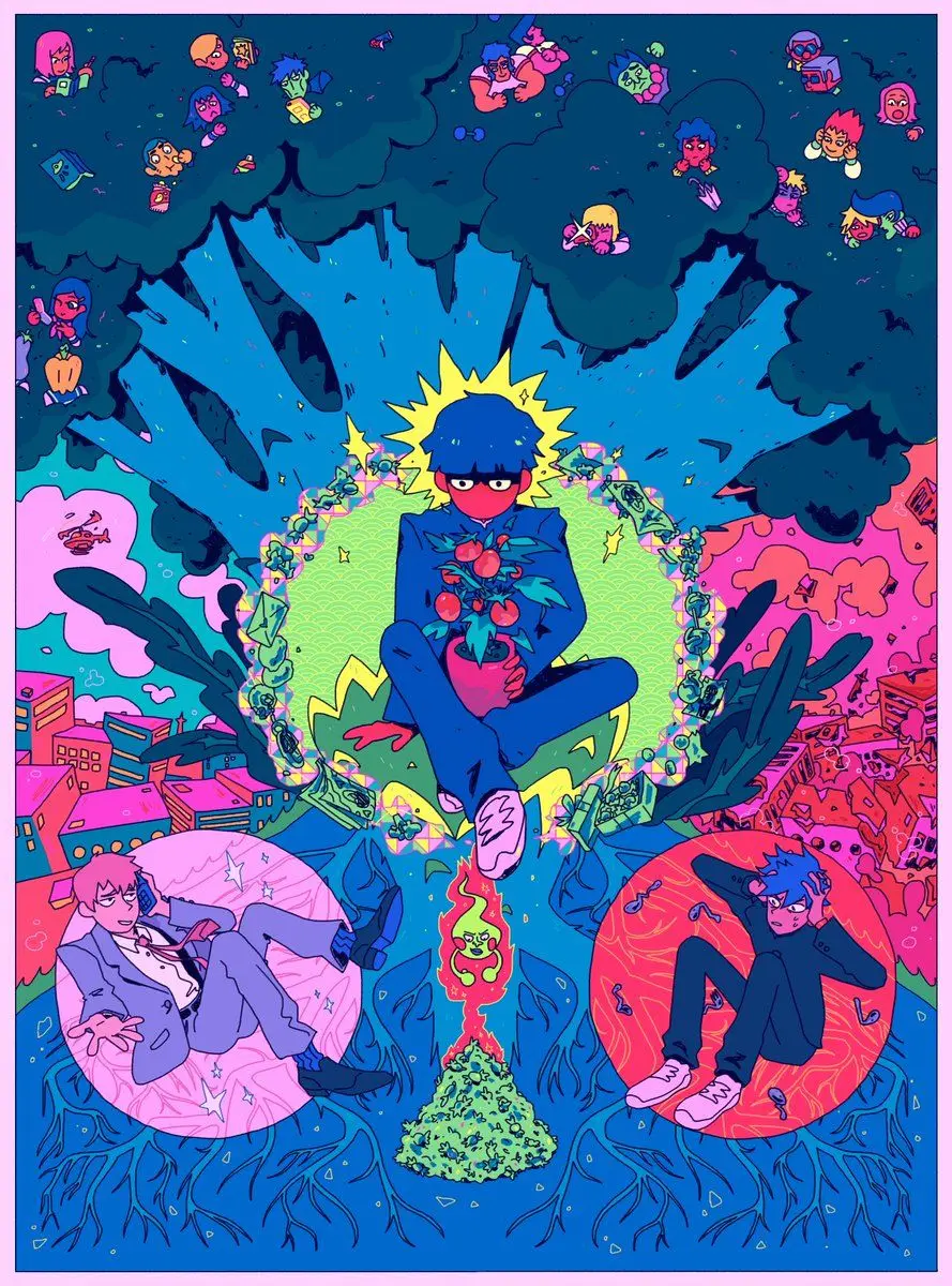 Плакат с аниме-фигуркой психоделия 100, искусство, домашний декор, ...