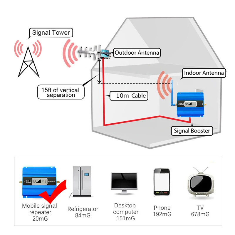 Этот ia однодиапазонный комплект усилителя, пожалуйста, проверьте частоту сначала.Как правило,900 МГц для голосового вызова GSM;1800 МГц для 4G LTE (полоса 3);2100 МГц для 3G UMTS (полоса 1)