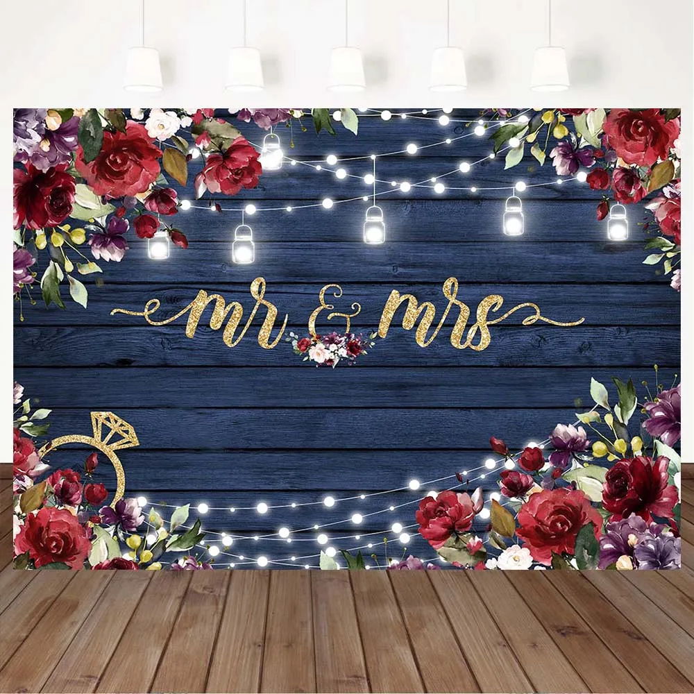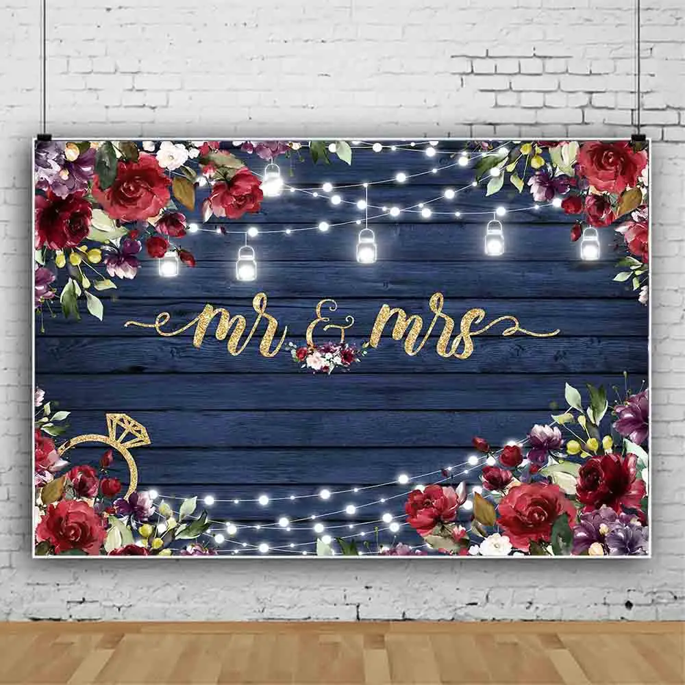 Свадебный деревянный фон Mocsicka для фотосъемки мистер и миссис цветы красная роза огни для невесты жениха фото фон реквизит для фотостудии