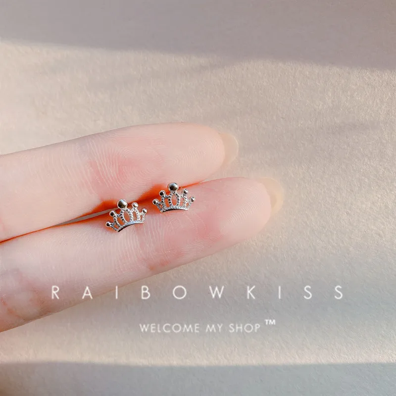 Серьги-гвоздики с короной из бисера для женщин, новые модные корейские Простые полые изысканные Хрящевые ногти для ушей, маленькая принцесса, ювелирные изделия для девочек