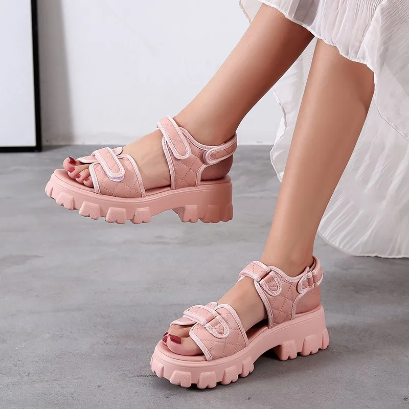 Сандалии-гладиаторы женские, на толстой подошве, с открытым носком,...