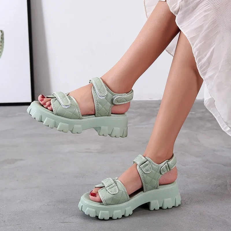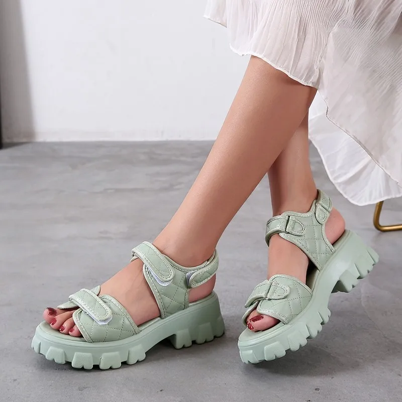 Сандалии женские на платформе и блочном каблуке, босоножки с ремешк...