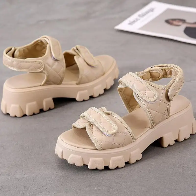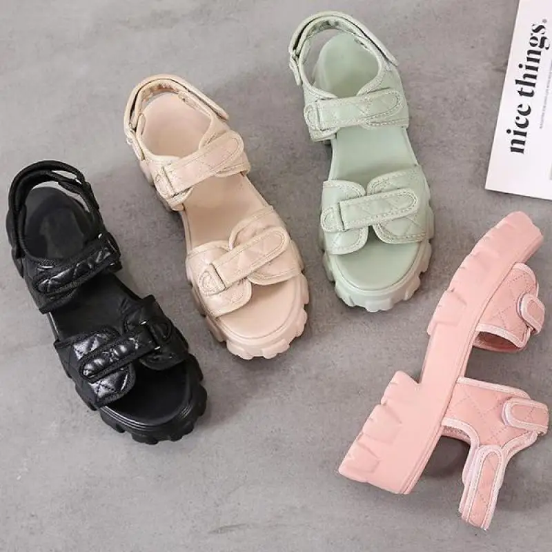 Женские сандалии с пряжкой, черные, белые, на толстой подошве, удобные сандалии на платформе, лето, пляжная обувь, сандалии